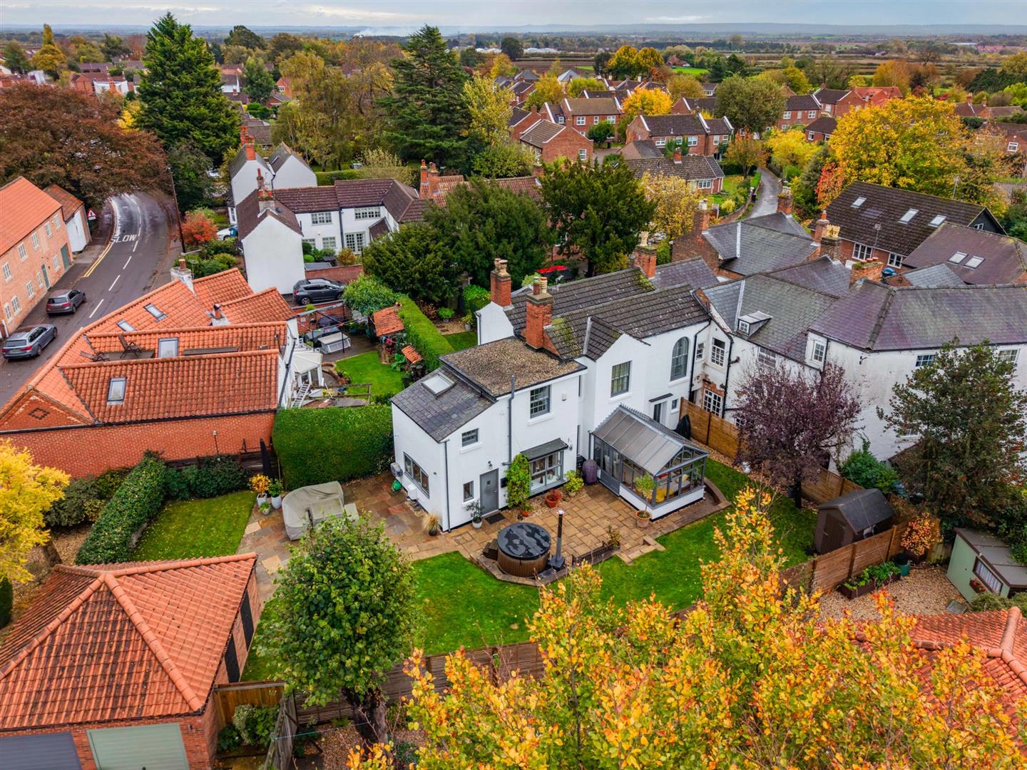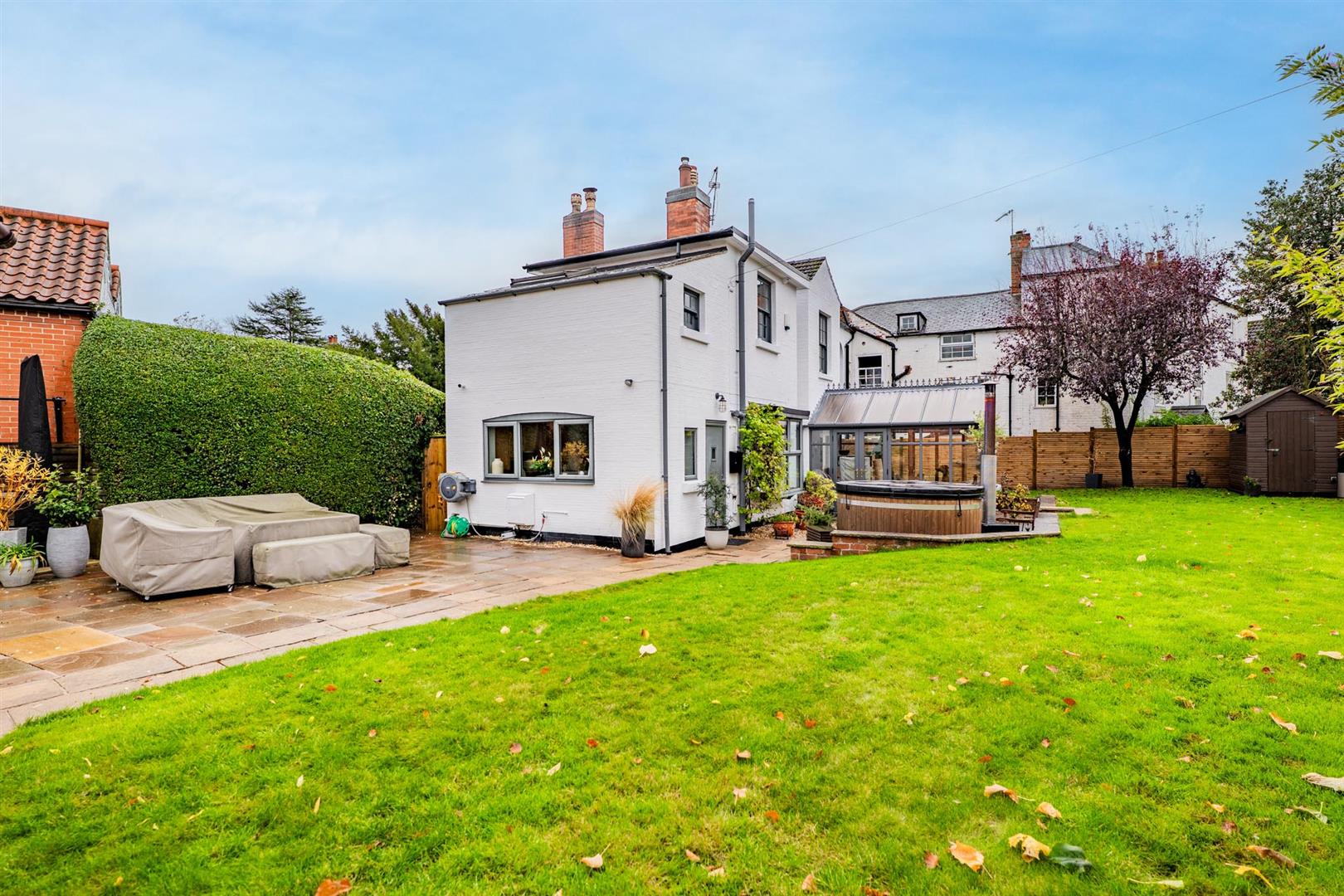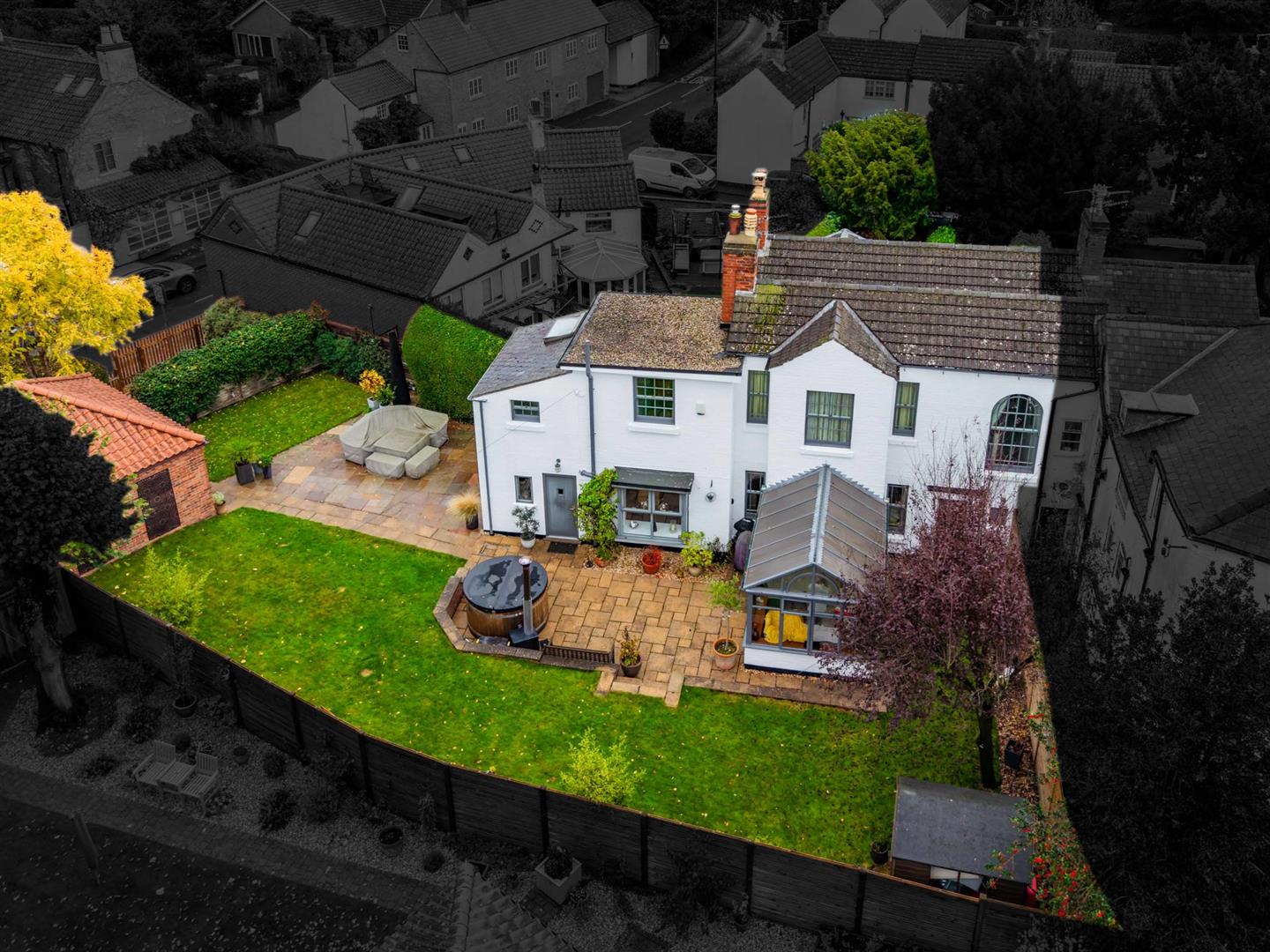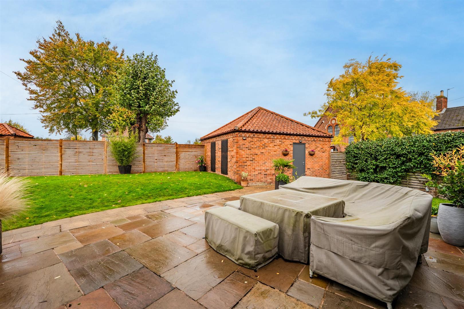 Exterior - The property occupies a delightful central village location, tucked away on an established and intriguing plot concealed from the road behind a well thought, landscaped, frontage with mature hedging and fencing and a low maintenance seating area with inset shrubs. An initial shared driveway leads onto a private drive for the property which provides off road car standing and, in turn, leads to a brick and pantiled garage which provides additional secure parking or workshop space with courtesy door at the rear. The gardens run to three sides, the main garden being on the westerly side of the property and therefore getting the afternoon and evening sun in the summer months. The garden has been thoughtfully landscaped to provide a fantastic outdoor area perfect for everyday living and entertaining. A large flagged terrace wraps around the property providing a considerable outdoor space with a brick retaining wall leading up onto a mainly lawned garden with a timber storage shed and attractive contemporary fencing. To the easterly side of the property is a further established garden which offers a good degree of privacy screened by a mature yew tree, having an initial stone chipping seating area with a sleeper edged border which leads up onto a central lawn with a further seating area at the foot which houses a useful log store and is bordered, in the main, by feather edge board fencing and hedging.