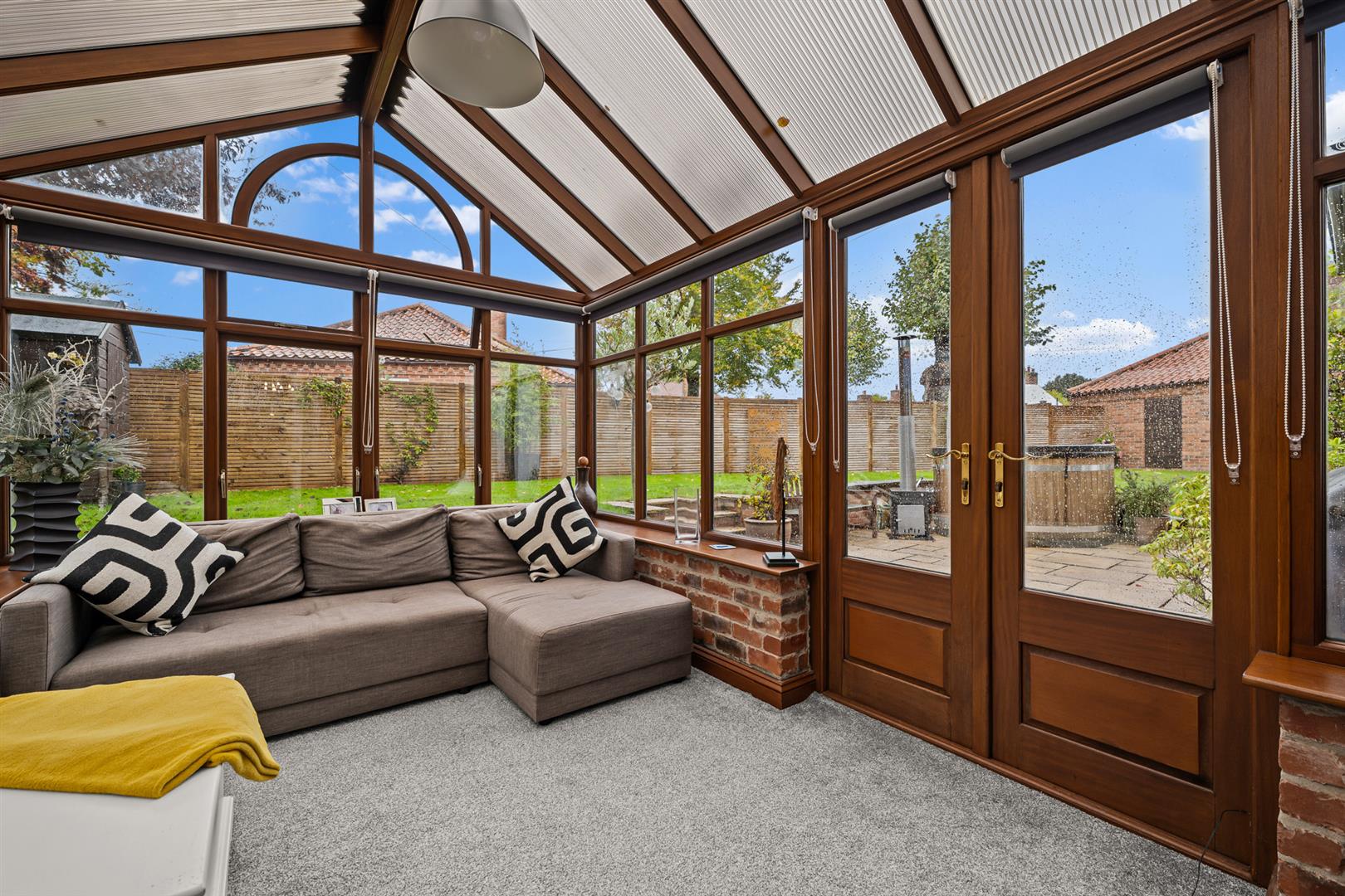 Conservatory - A useful addition to the property providing a further versatile reception space, having attractive exposed brick base, double glazed side panels with opening top lights, pitched glass roof and French doors leading out into the garden.