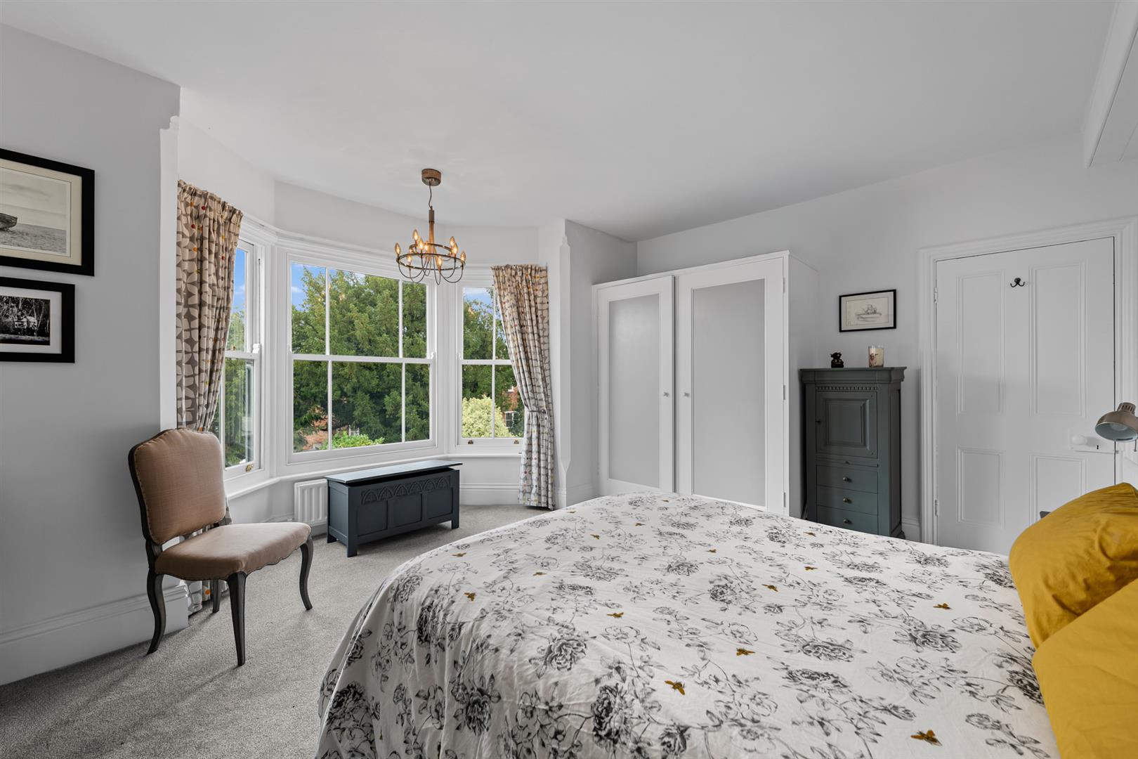 Bedroom 2 - 4.88m max x 2.84m max (16' max x 9'4" max) - A interesting T shaped room flooded with light, benefitting from three sash windows overlooking the garden and having high ceilings, deep skirtings and chimney breast with attractive cast iron fireplace.