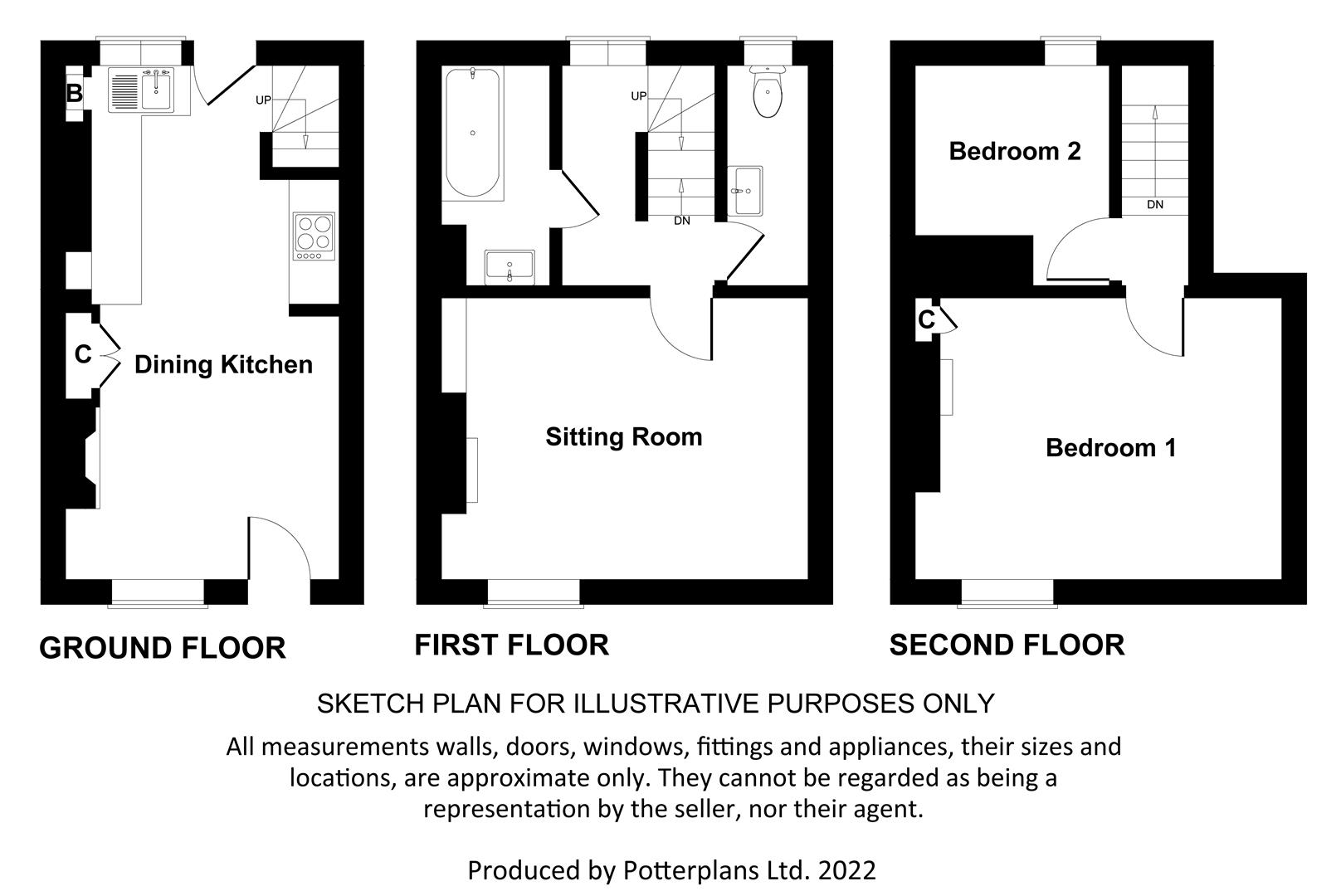 The property offers accommodation over three floors and comprises a ground floor open plan living kitchen which provides an initial reception area with an attractive fireplace with solid fuel stove and exposed brick chimney breast. Access off the kitchen is a small courtyard area offering a very manageable outdoor space that looks out across to a further, shared, courtyard. To the first floor is a further attractive reception room, again having a feature fireplace with alcoves to the side and an elevated aspect across to the church. In addition there is a first floor bathroom and separate WC. An additional staircase rises to the second floor where there are two further bedrooms, the principle of which again affords a delightful aspect to the front.