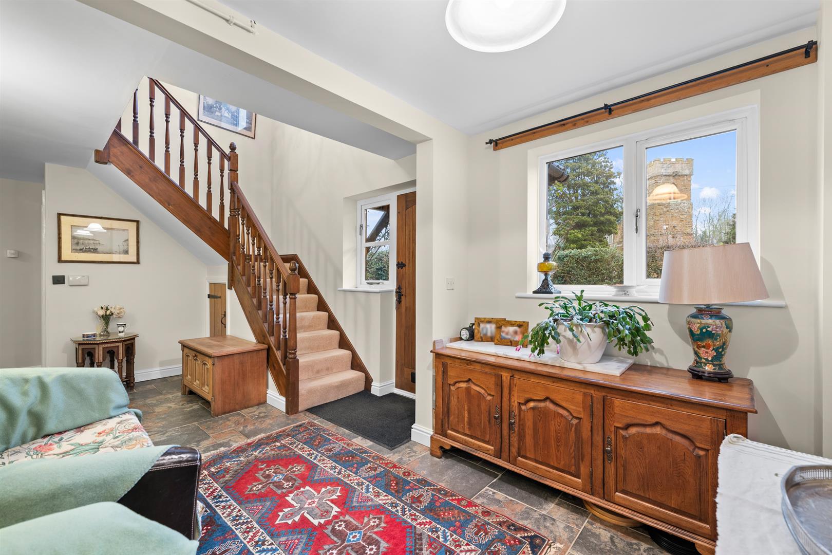 Returning to the inner hallway further bespoke solid oak ledged doors with antique latches lead to: