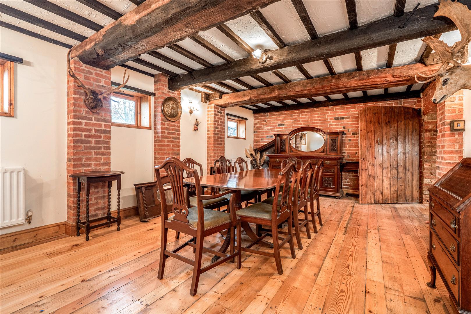 Dining Room - 6.53m x 4.06m (21'5 x 13'4) - Heavily beamed ceiling, 3 windows, pine floor, 2 double panelled radiators and brick columns concealing steelwork introduced during the conversion. The dining room would have potential for conversion to additional bedroom accommodation.