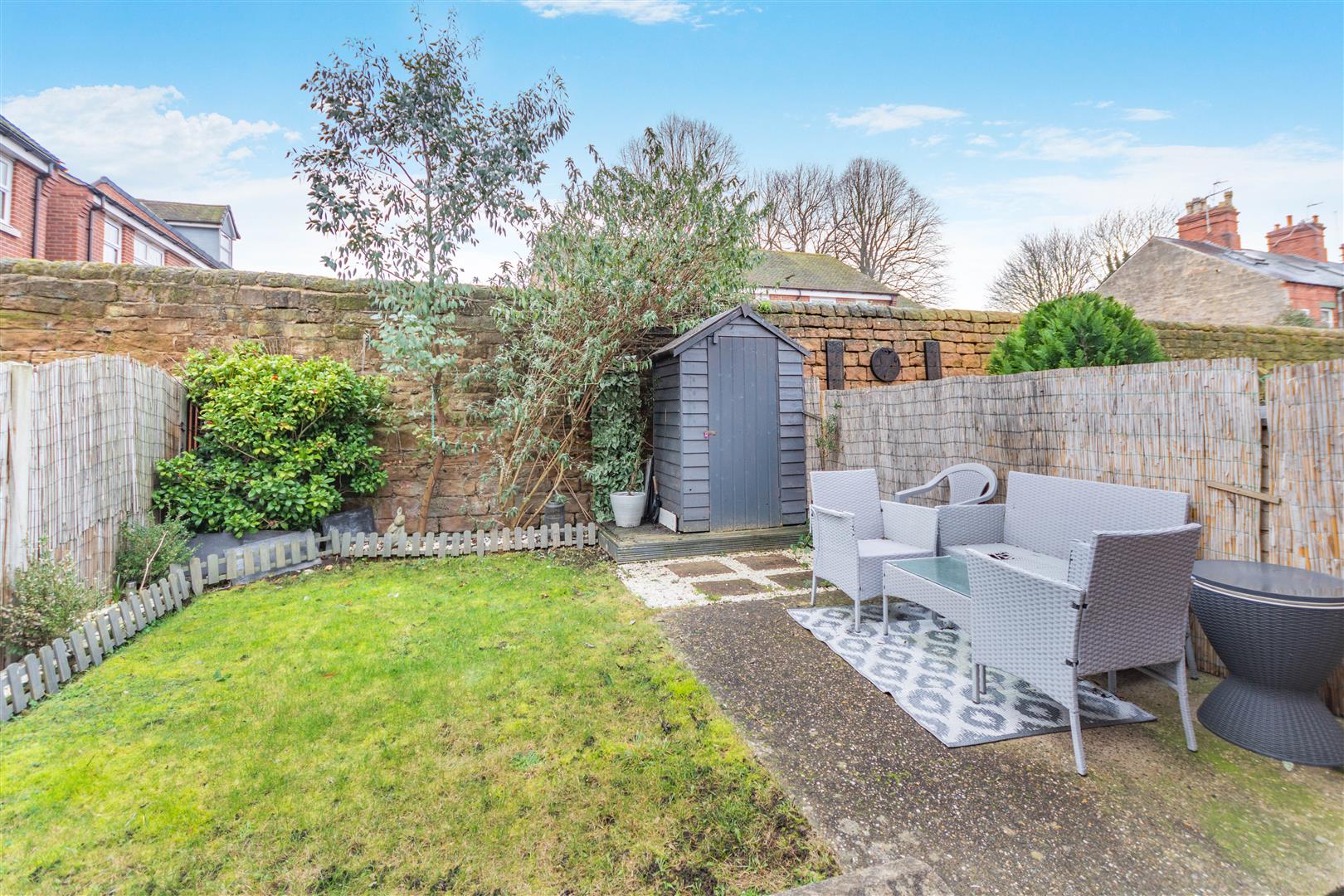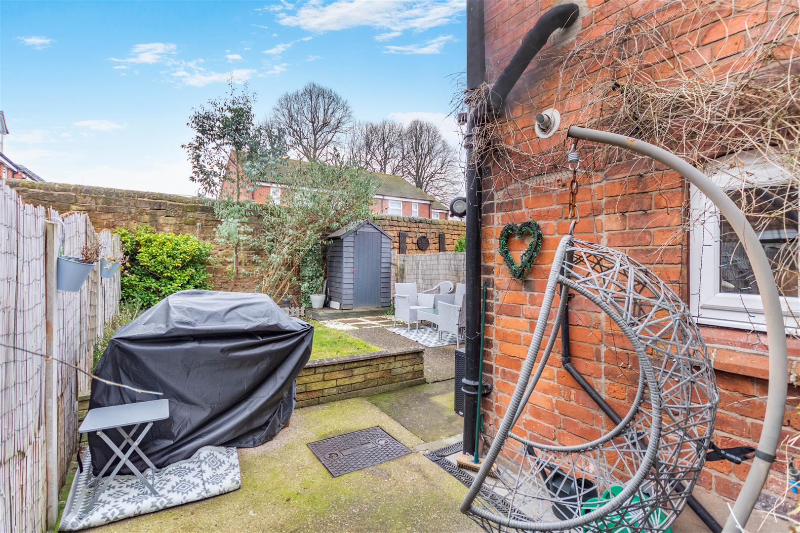 Outside - Externally, there is a gate to the side of the property leading to a pathway to the rear garden. To the rear of the property, there is a low maintenance, south facing garden with hardstanding patio and paths, lawn, borders and a shed.