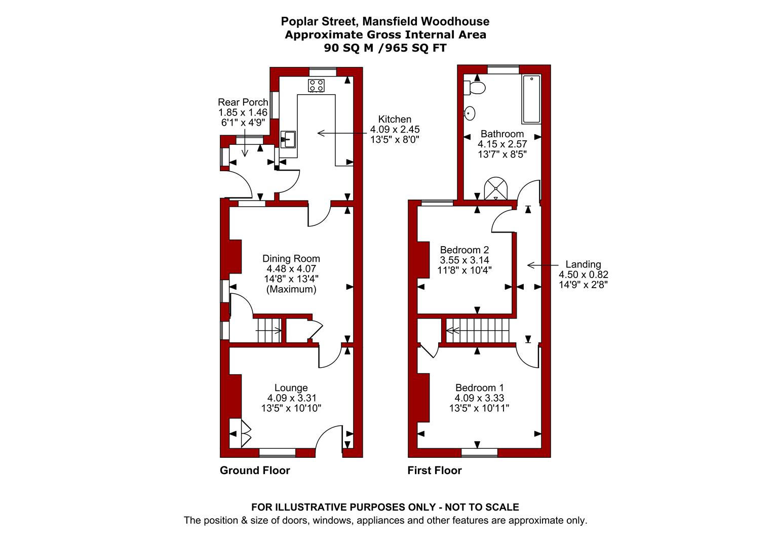 The property is presented in excellent condition throughout with gas central heating and UPVC double glazing. The accommodation extends to 965 sq ft providing a spacious internal layout comprising on the ground floor; lounge, separate dining room, kitchen and a useful rear porch. The first floor landing leads to two spacious double bedrooms and a large bathroom.