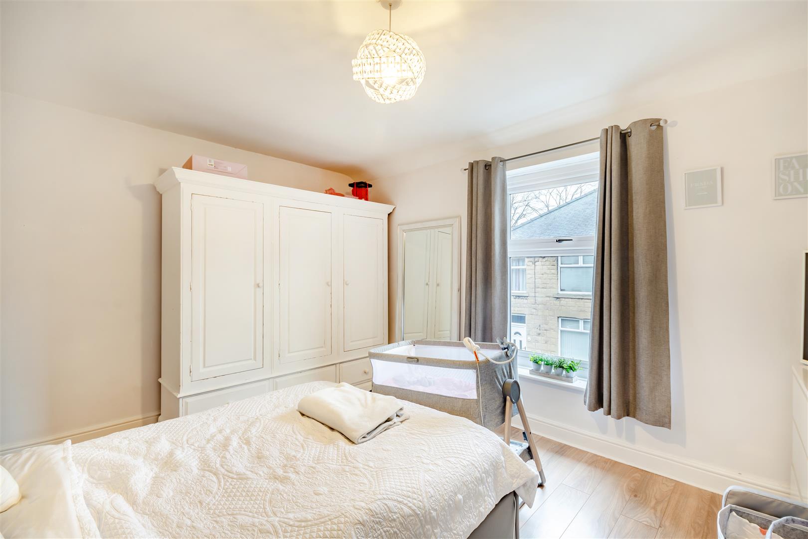 Bedroom 1 - 4.06m x 3.30m (13'4" x 10'10") - With built-in storage cupboard with loft hatch leading to a boarded loft. Radiator, laminate floor and double glazed window to the front elevation.