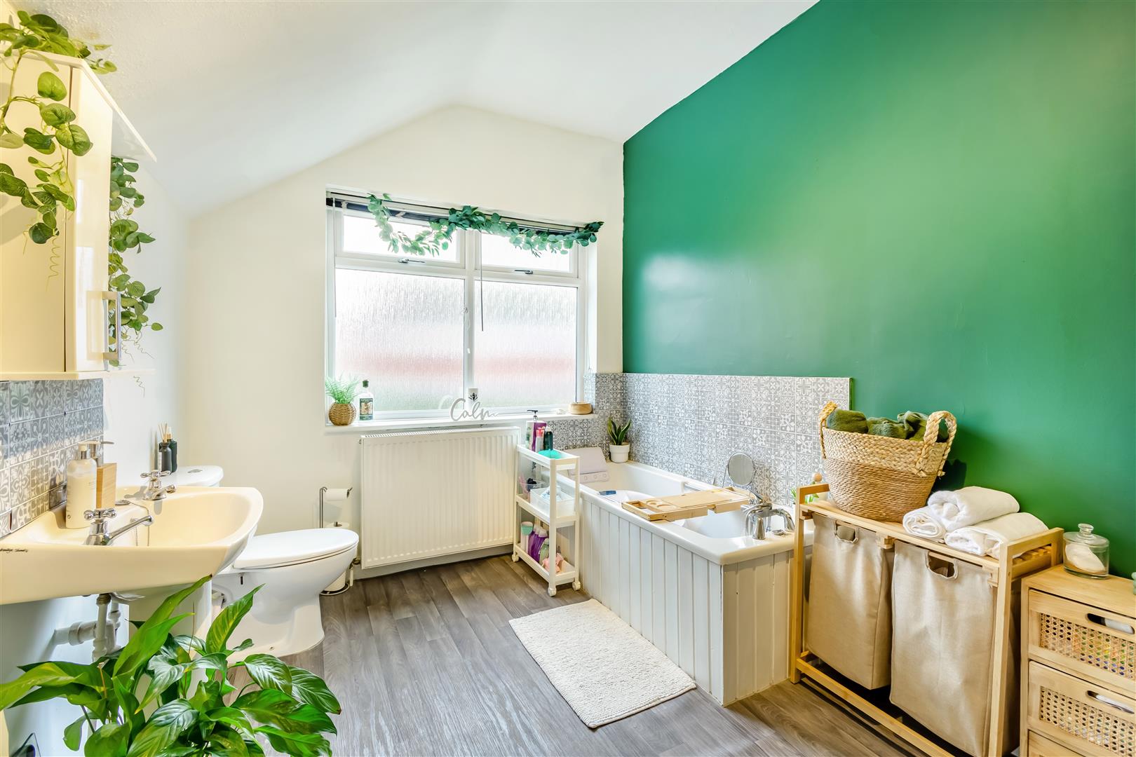 Large Bathroom - 4.09m x 2.49m (13'5" x 8'2") - A large bathroom comprising a four piece white suite comprising a panelled bath with tiled surround, mixer tap and shower handset. Separate tiled shower cubicle. Pedestal wash hand basin. Low flush WC. Chrome heated towel rail, radiator and obscure double glazed window to the rear elevation.
