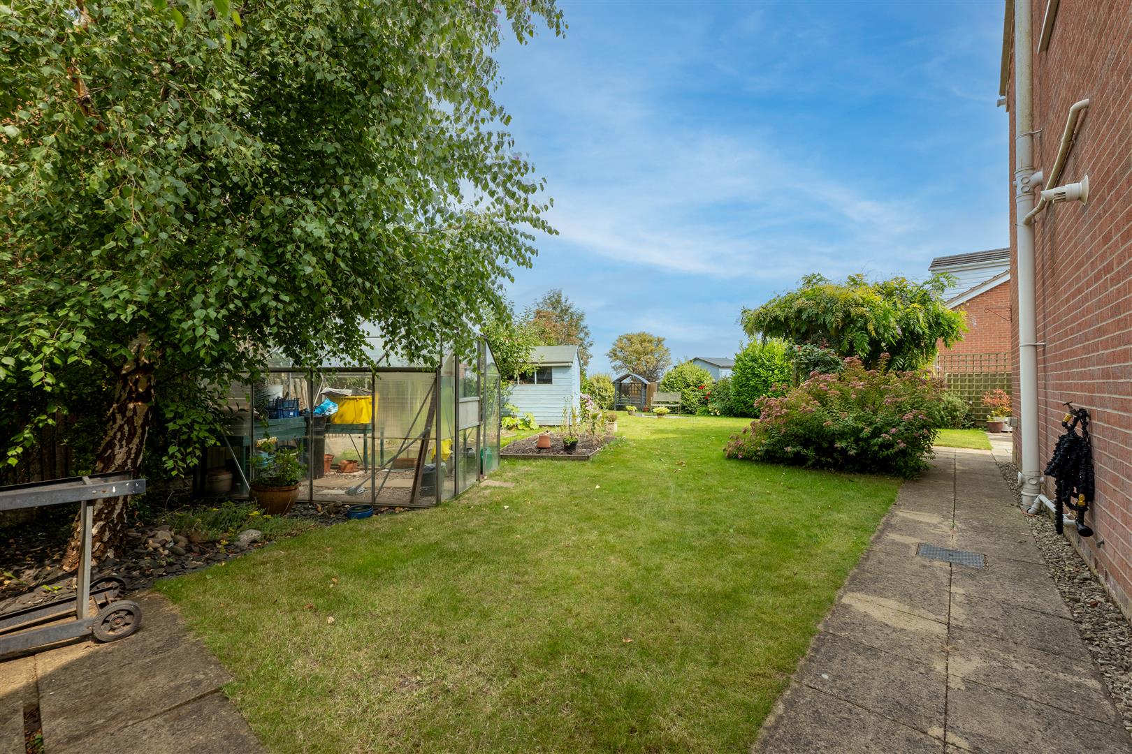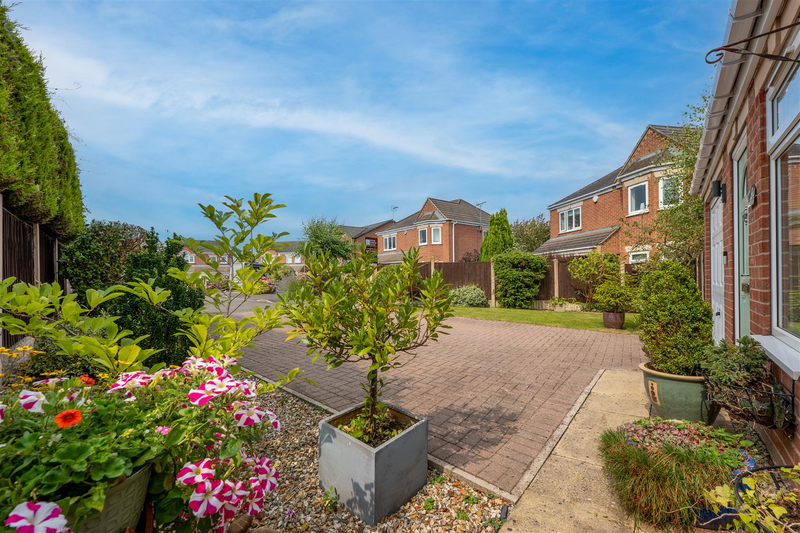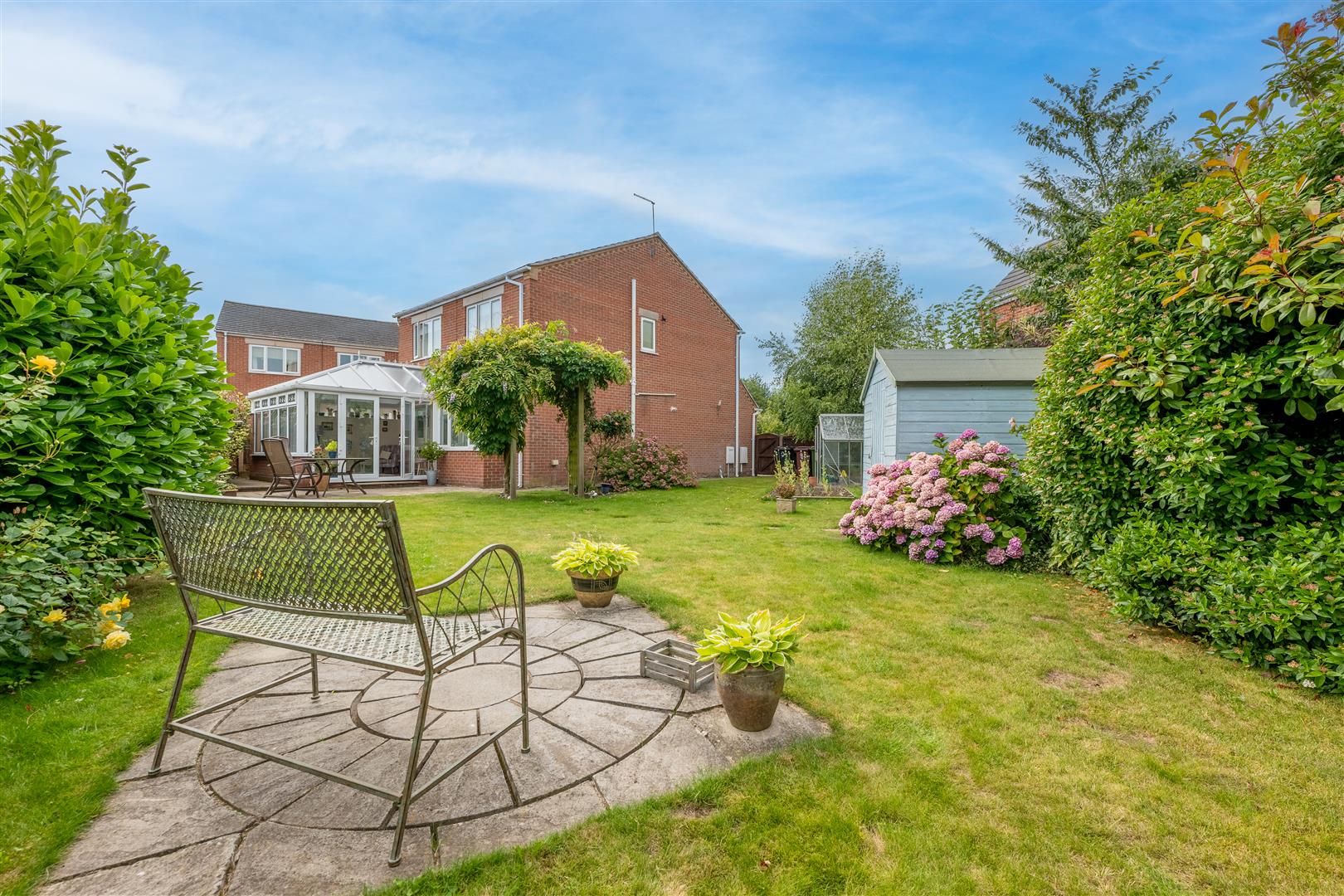 Outside - The property stands in a fantastic position at the end of this small cul-de-sac close on a large corner plot with a lovely semi-rural feel and pleasant views. The property is ideally placed for outdoor activities, being within walking distance of the country park, and offers excellent transport links with the M1 a short drive away. There is a double width block paved driveway which leads to a garage store equipped with power and light and with an electric car charging point (part of the garage has been converted to provide a utility room). The front garden is mainly laid to lawn with plants and shrubs to a pebble border down one side, and a gate provides access to the rear of the property. The large rear garden is a particular feature which includes a paved patio and ample lawn with a decorative paved seating area and borders of mature plants and shrubs. There are also hardstanding areas for a greenhouse and a garden shed. An outside water tap, and electric point are also provided.
