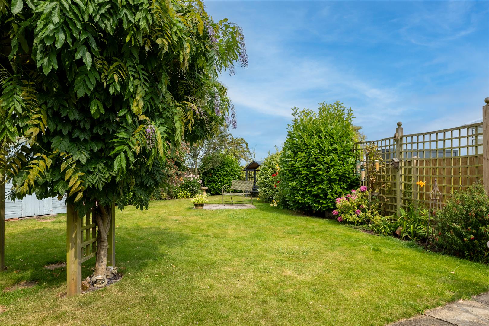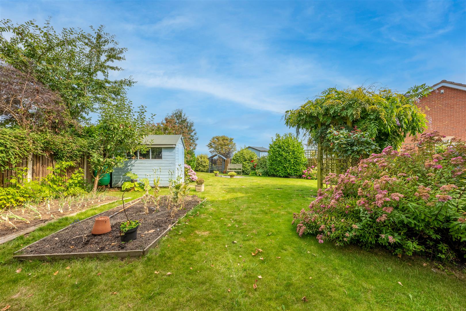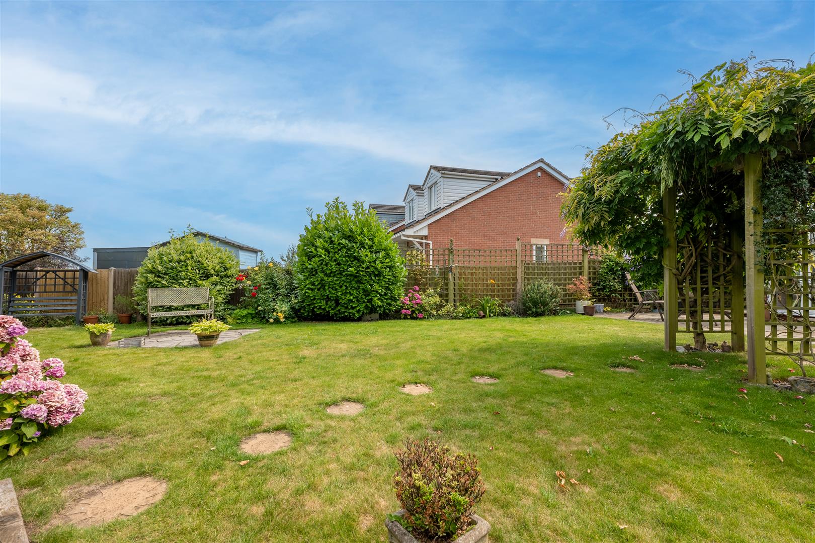 Outside - The property stands in a fantastic position at the end of this small cul-de-sac close on a large corner plot with a lovely semi-rural feel and pleasant views. The property is ideally placed for outdoor activities, being within walking distance of the country park, and offers excellent transport links with the M1 a short drive away. There is a double width block paved driveway which leads to a garage store equipped with power and light and with an electric car charging point (part of the garage has been converted to provide a utility room). The front garden is mainly laid to lawn with plants and shrubs to a pebble border down one side, and a gate provides access to the rear of the property. The large rear garden is a particular feature which includes a paved patio and ample lawn with a decorative paved seating area and borders of mature plants and shrubs. There are also hardstanding areas for a greenhouse and a garden shed. An outside water tap, and electric point are also provided.