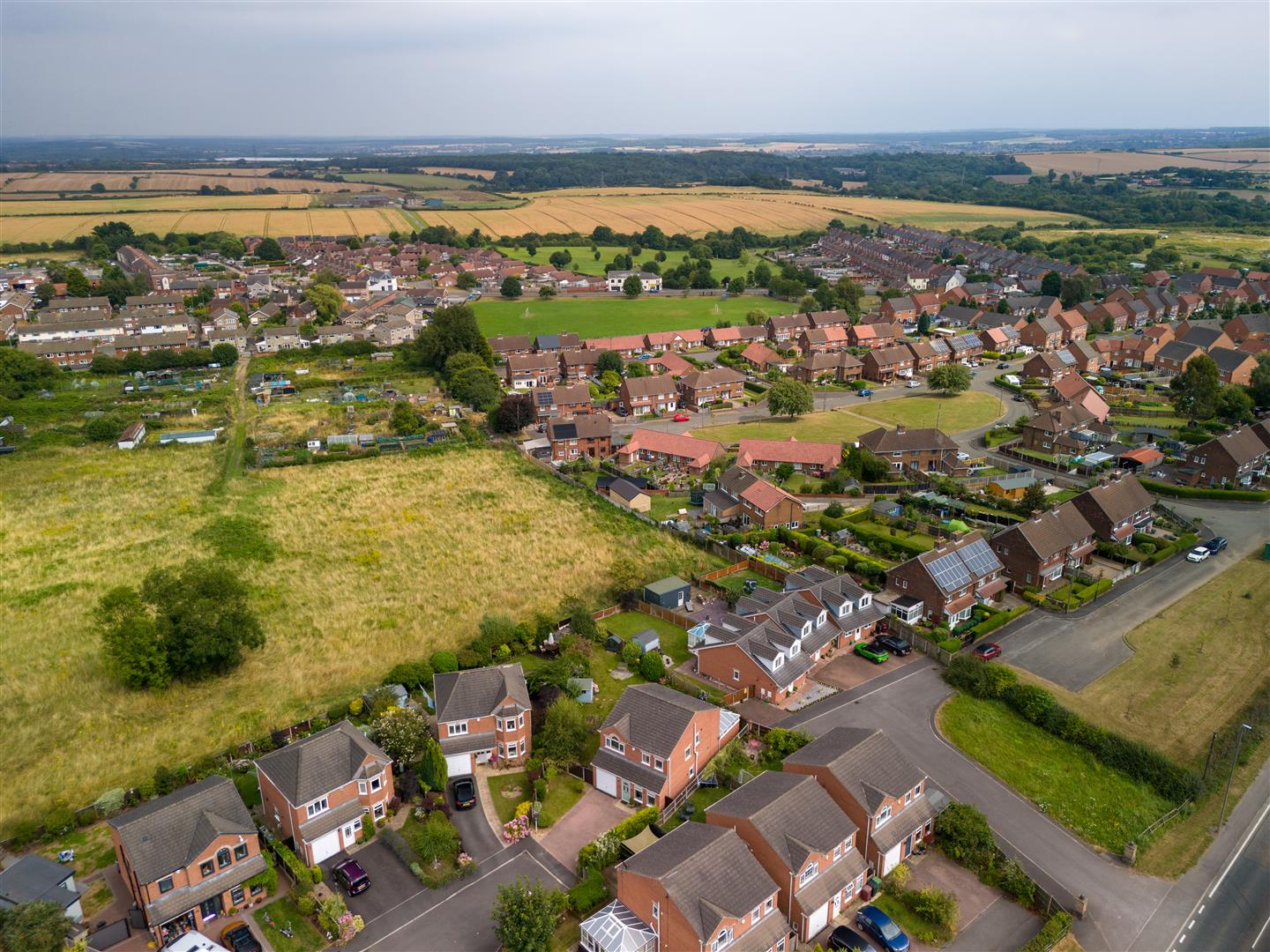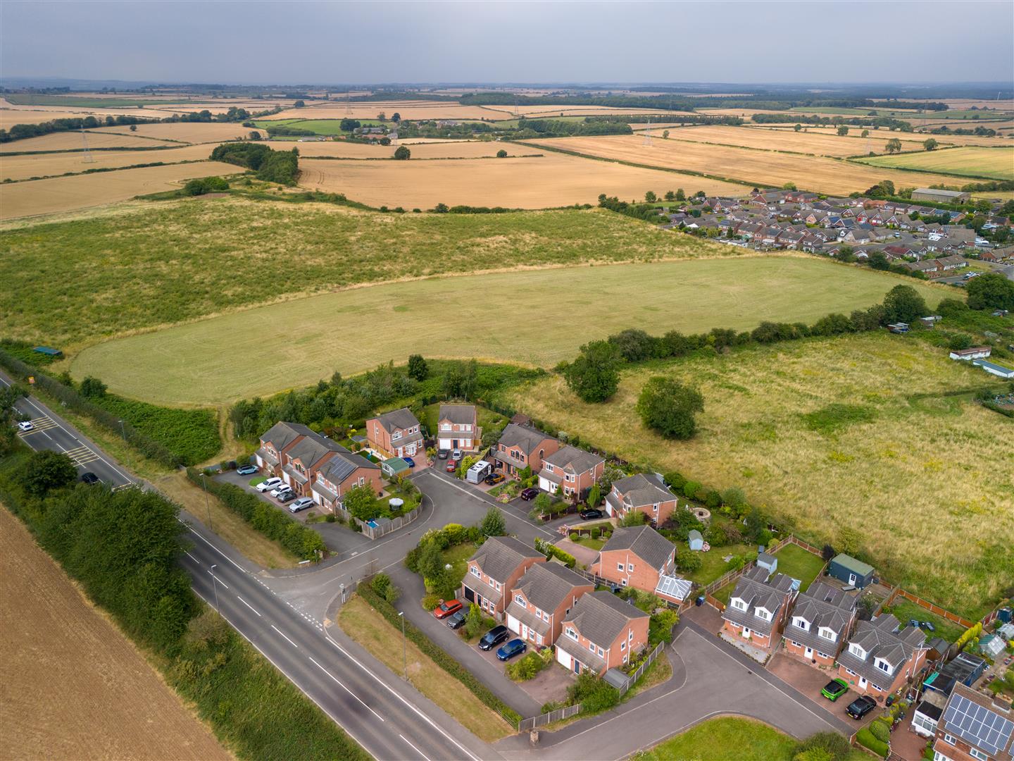 A modern four bedroom detached family house occupying a large corner plot at the end of a small cul-de-sac close in a semi-rural style setting bordering to open countryside.