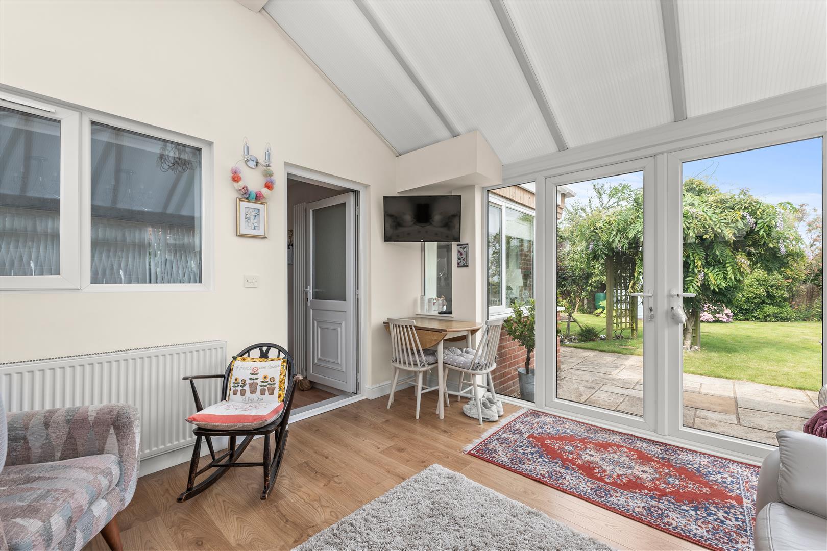 Conservatory - 3.58m x 3.58m (11'9" x 11'9") - With laminate floor, radiator and French doors leading out onto the rear garden.