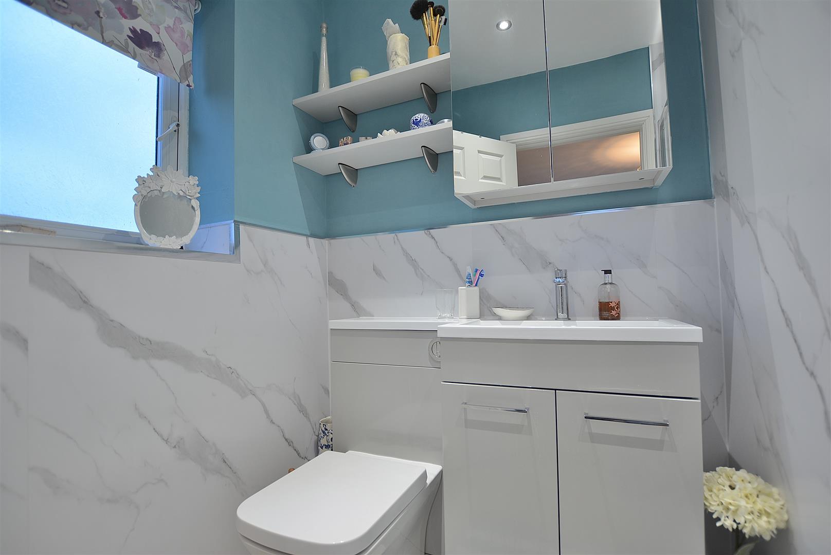 Downstairs Wc - 1.50m x 0.91m (4'11" x 3'0") - Having a modern two piece white suite comprising a low flush WC. Vanity unit with inset wash hand basin with chrome mixer tap and storage cupboard beneath. Tiled floor, radiator and obscure double glazed window to the side elevation.
