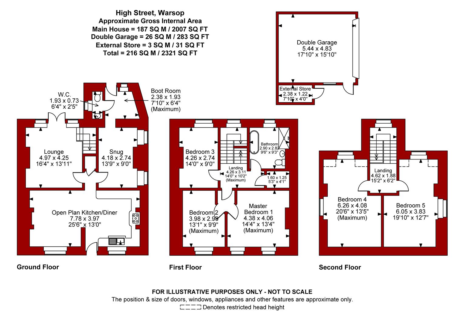 A double fronted, Grade II Listed, three storey detached house (2007 sq ft) with five bedrooms and a double garage to the rear, situated on a no through road in a central Warsop location.