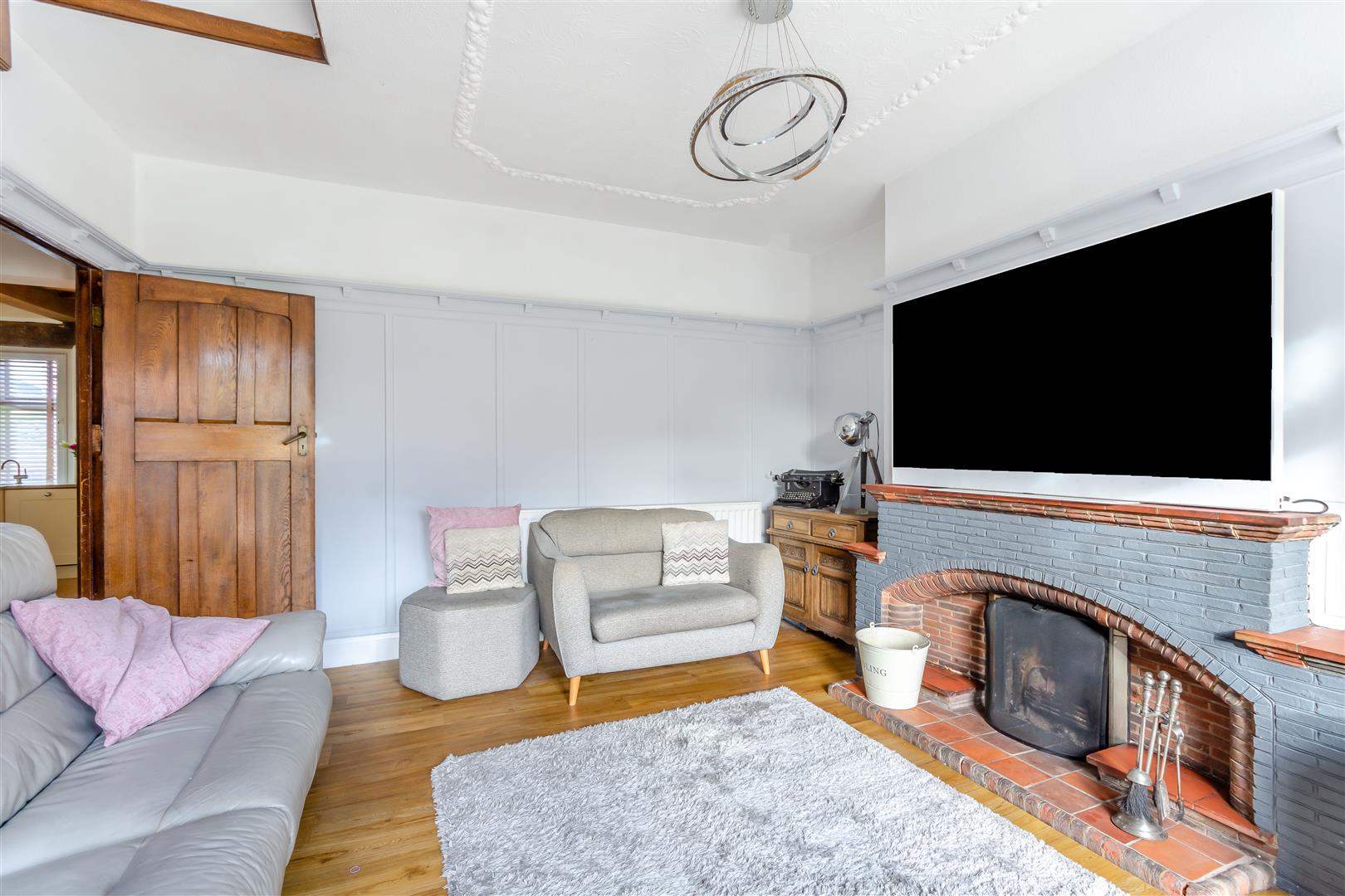 Lounge - 4.93m x 4.24m (16'2" x 13'11") - A spacious reception room with lovely character features, including a brick fireplace with an open coal fire and tiled hearth. Ceiling mouldings, extensive panelled walls, underfloor heating, stairs to the first floor landing and two windows and French doors to the rear elevation leading out onto the garden.