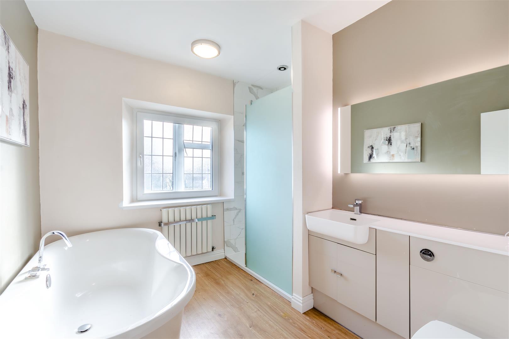 Family Bathroom - 2.90m x 2.79m (9'6" x 9'2") - Having a modern four piece white suite with chrome fittings comprising a large bathtub swan neck mixer tap. Separate tiled shower enclosure with rainfall shower. Vanity unit with inset wash hand basin with mixer tap and storage cupboard beneath. Low flush WC with enclosed cistern. Laminate floor, radiator and window to the rear elevation with secondary UPVC double glazing.