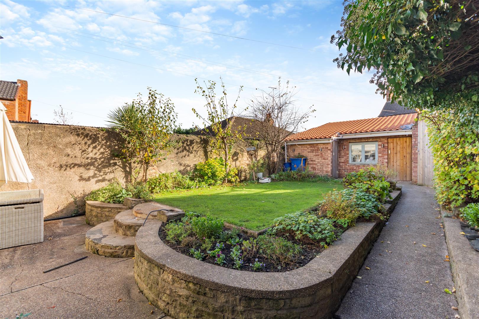 Outside - Externally, the property fronts onto High Street with shared access to the side of the house known as Bradleys Yard leading to a double garage with a remote controlled roller door. A gate adjacent to the garage provides access to the rear garden. To the rear of the property, there is an enclosed garden with a hardstanding patio which extends to a pathway leading to the double garage which has an adjoining external store. From the patio, three steps lead up to a central lawn with raised flowerbeds to each side.