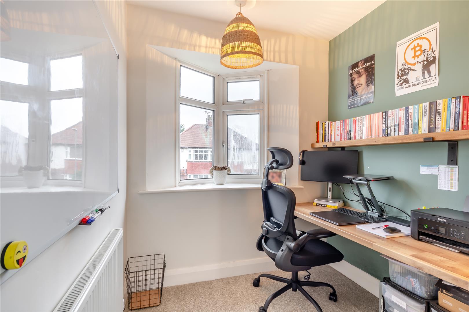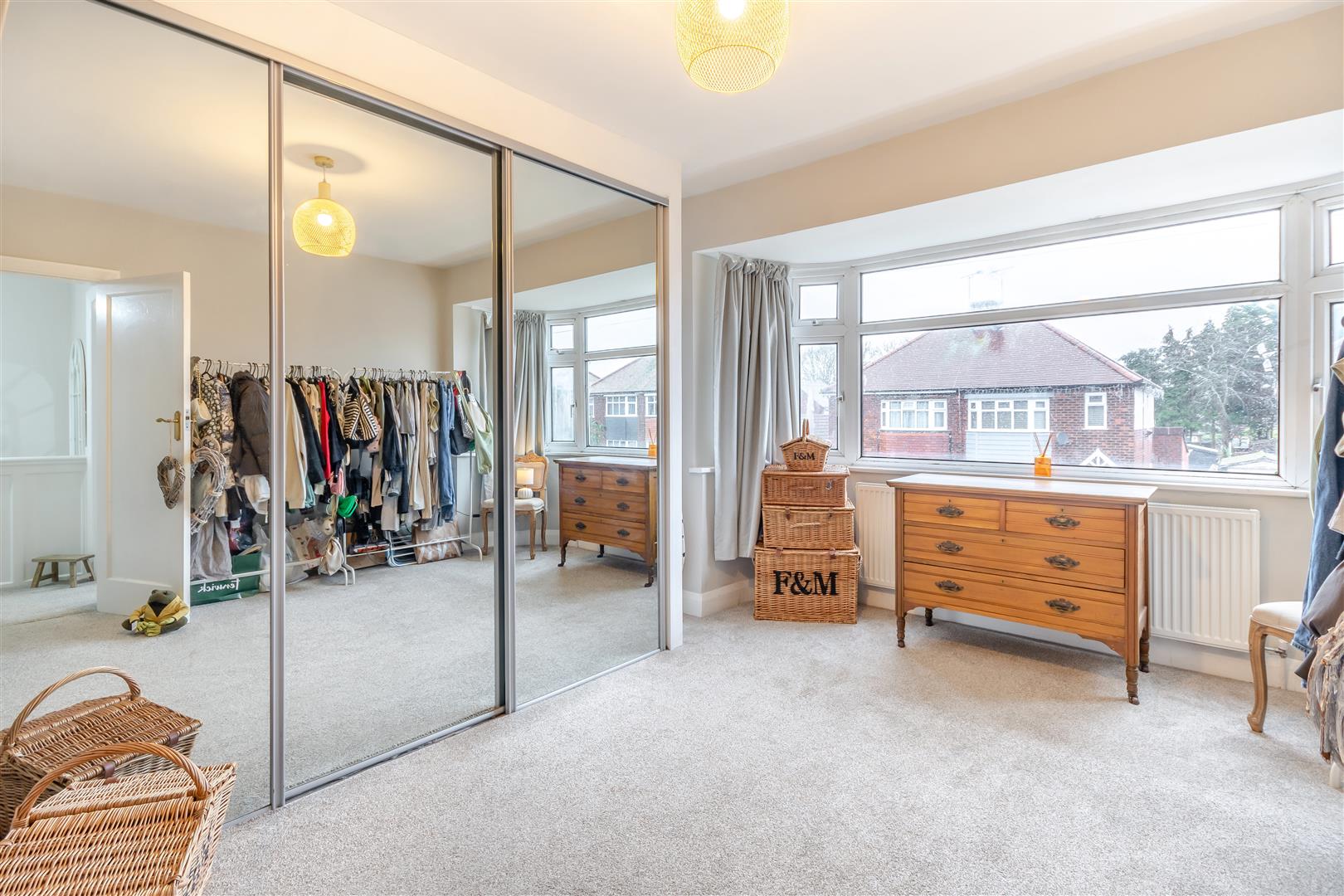 Bedroom 2 - 4.17m into bay x 3.66m into wardrobes (13'8" into - Having extensive fitted wardrobes with hanging rails and shelving and mirror fronted doors. Radiator and double glazed bay window to the front elevation.