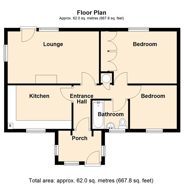 The accommodation briefly provides an entrance porch, entrance hall with built-in cupboard, lounge dual aspect, kitchen with appliances, main bedroom with two double built-in wardrobes, a single guest bedroom and a nicely appointed bathroom containing a combined shower/bath.