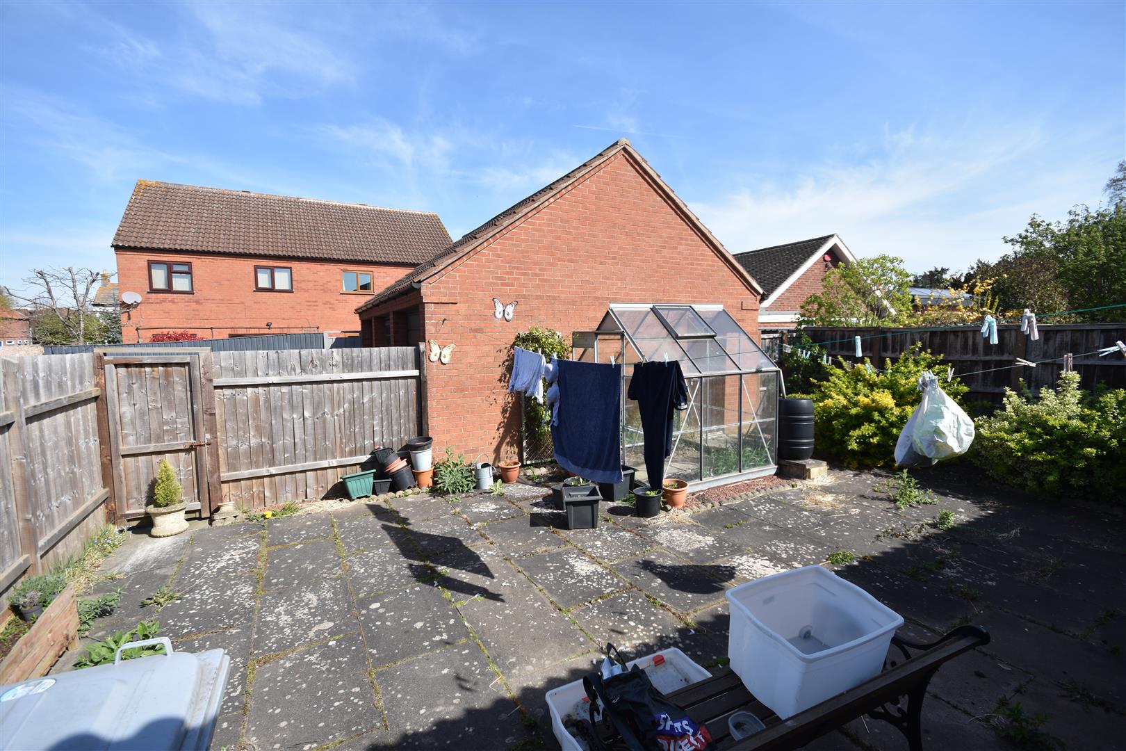 Outside - The property has an open plan frontage and a paved path to the front door. The rear garden is paved and enclosed on the road side area with a 6ft high fence. There is a greenhouse and a personal gate through to the garage block with forecourt parking. The brick built garage has an up and over door.