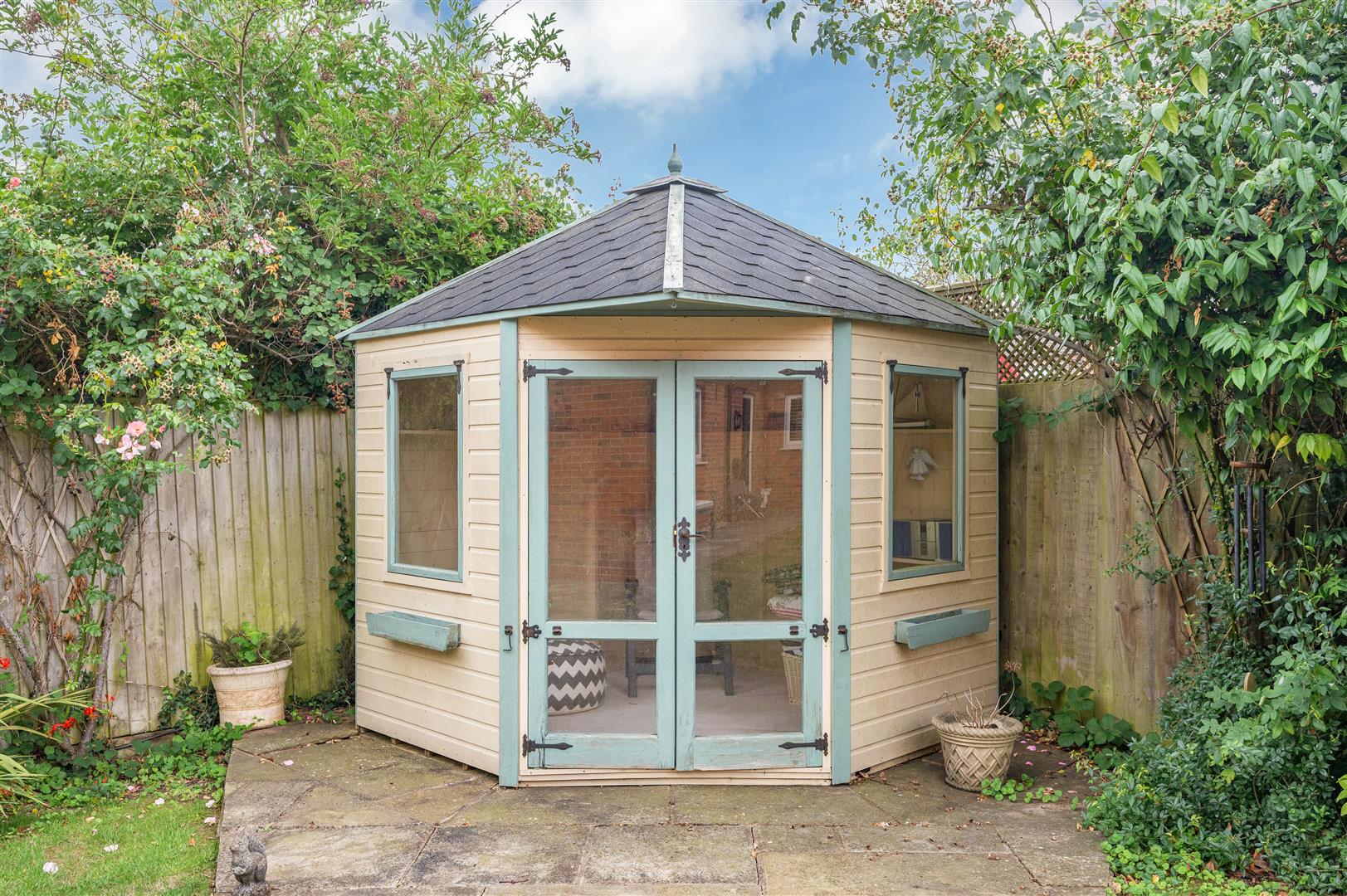There are grassed areas to the side and rear of the bungalow, together with an extensive Indian stone paved patio. Oil storage tank. Small summerhouse and garden shed. External power points.