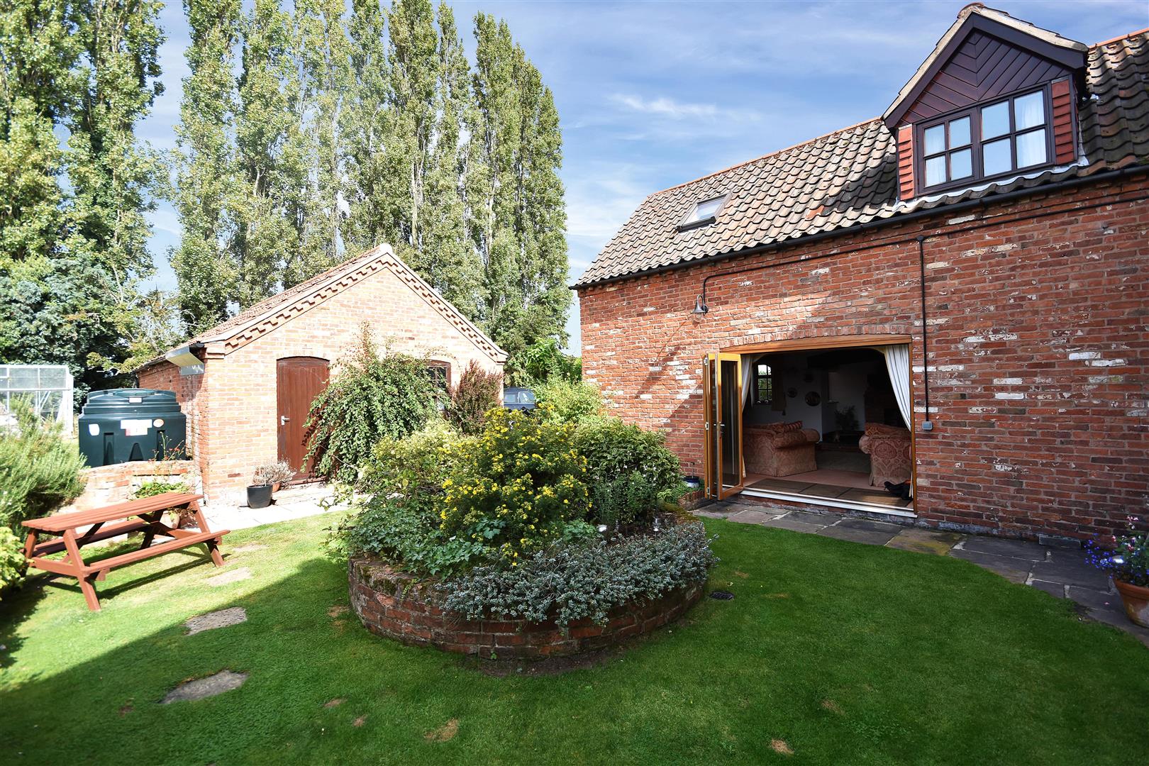 The courtyard garden has a low wall surround. The detached garage is substantially built with brick elevations under a pantiled roof. The garden and paddock area are post and rail fenced. The property has mains drainage.