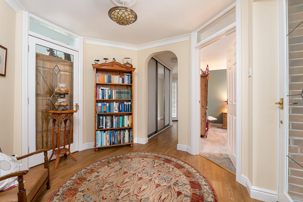 Hall - 2.74m x 2.74m (9' x 9' ) - This unusual hexagonal shaped hall has attractive Amtico floor covering, a cloaks cupboard with modern sliding doors fitted in 2024, coved ceiling and radiator.