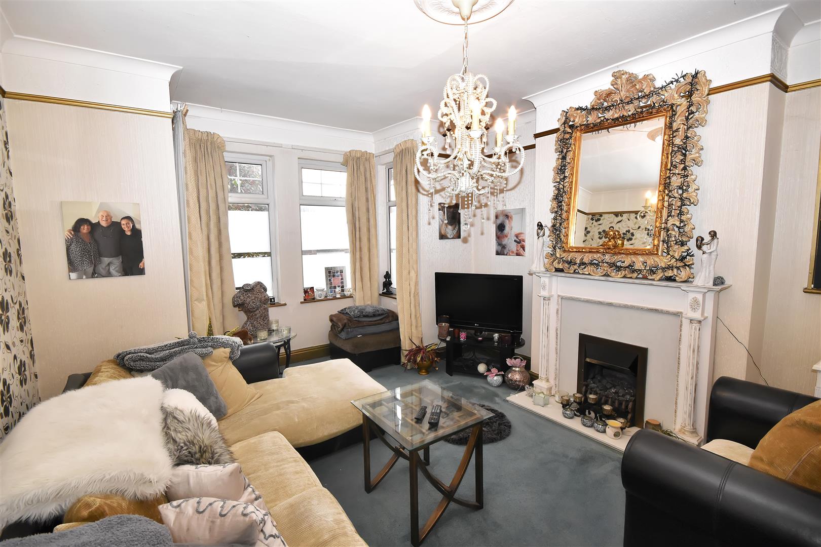 Walk in bay with uPVC double glazed window to front elevation, radiator, picture rail and coved ceiling. Wooden fire surround, marble style fireplace and hearth with Living Flame gas fire.