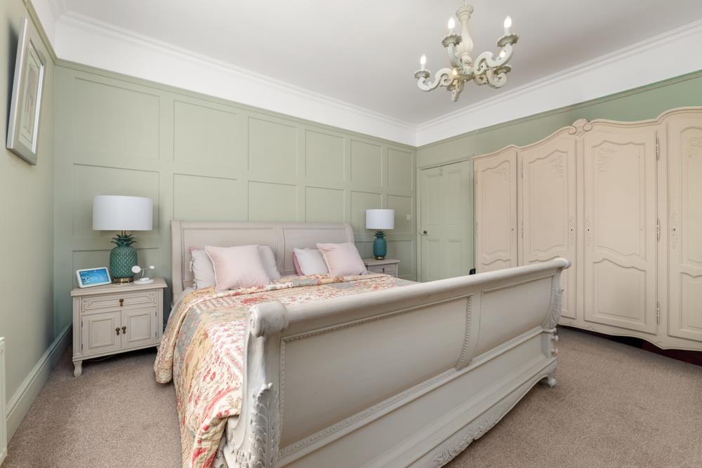Outside, the property is equally impressive. The front driveway accommodates parking for up to three cars, a rare find in such a desirable location. The secluded rear gardens offer a tranquil retreat, featuring a well-maintained lawn and a patio terrace, perfect for outdoor gatherings or quiet evenings.