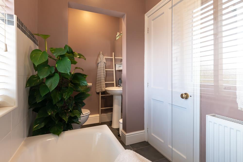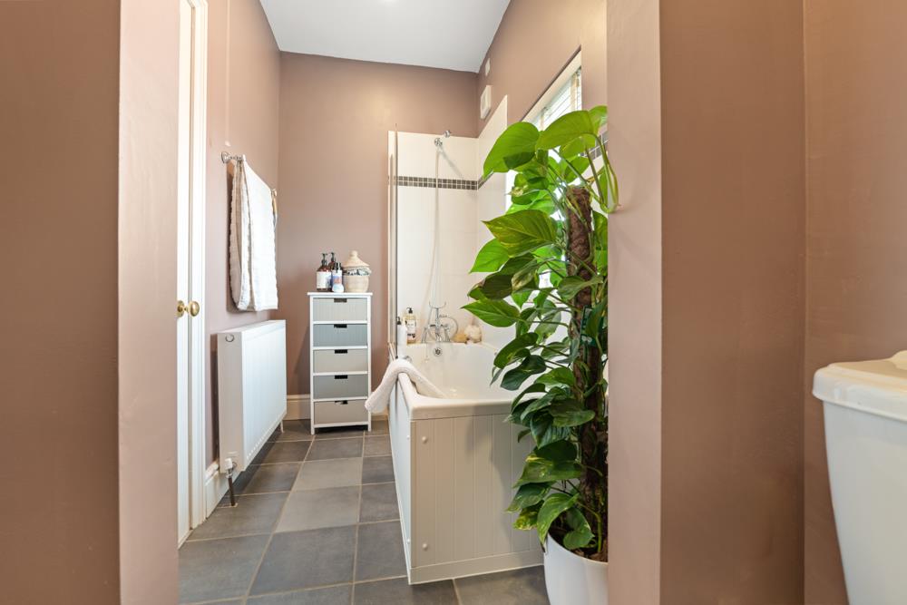 Family Bathroom - 2.13m x 1.47m (7' x 4'10) - Fitted with a white suite comprising low suite WC, pedestal wash hand basin, panelled bath with mixer tap and shower attachment over, shower screen, tiling to splash backs in the shower over, part tiled walls. UPVC double glazed window to rear elevation, radiator.