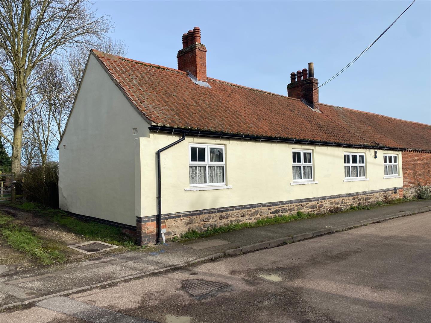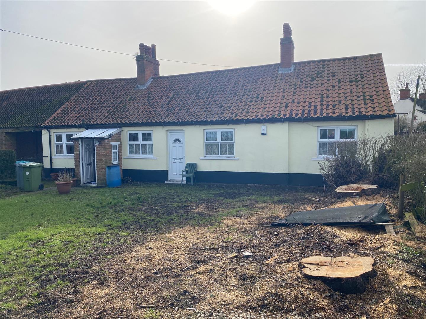 A single storey building with rendered elevations, stone footings, a blue brick damp proof course and a pitched pantiled roof. The property provides the following accommodation: