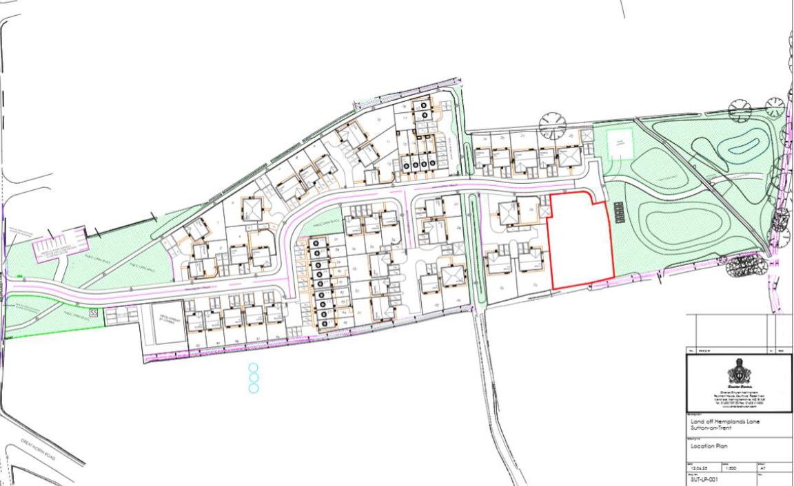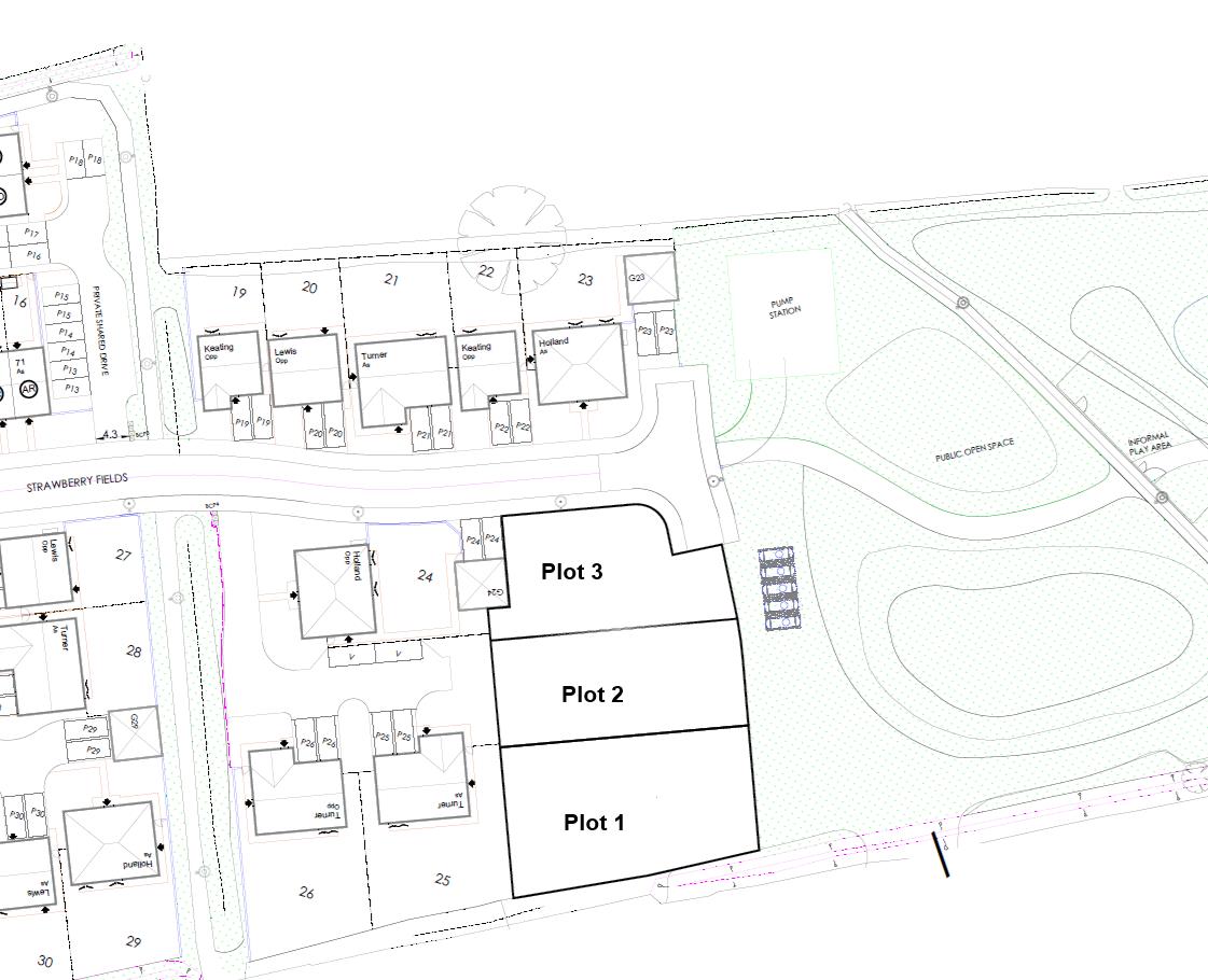Location - The plots are situated amoungst the Persimmon Homes, Charles Church Strawberry Fields new homes development in the village of Sutton on Trent. They are situated at the edge of this development, adjacent to the open space, footpath and play area.