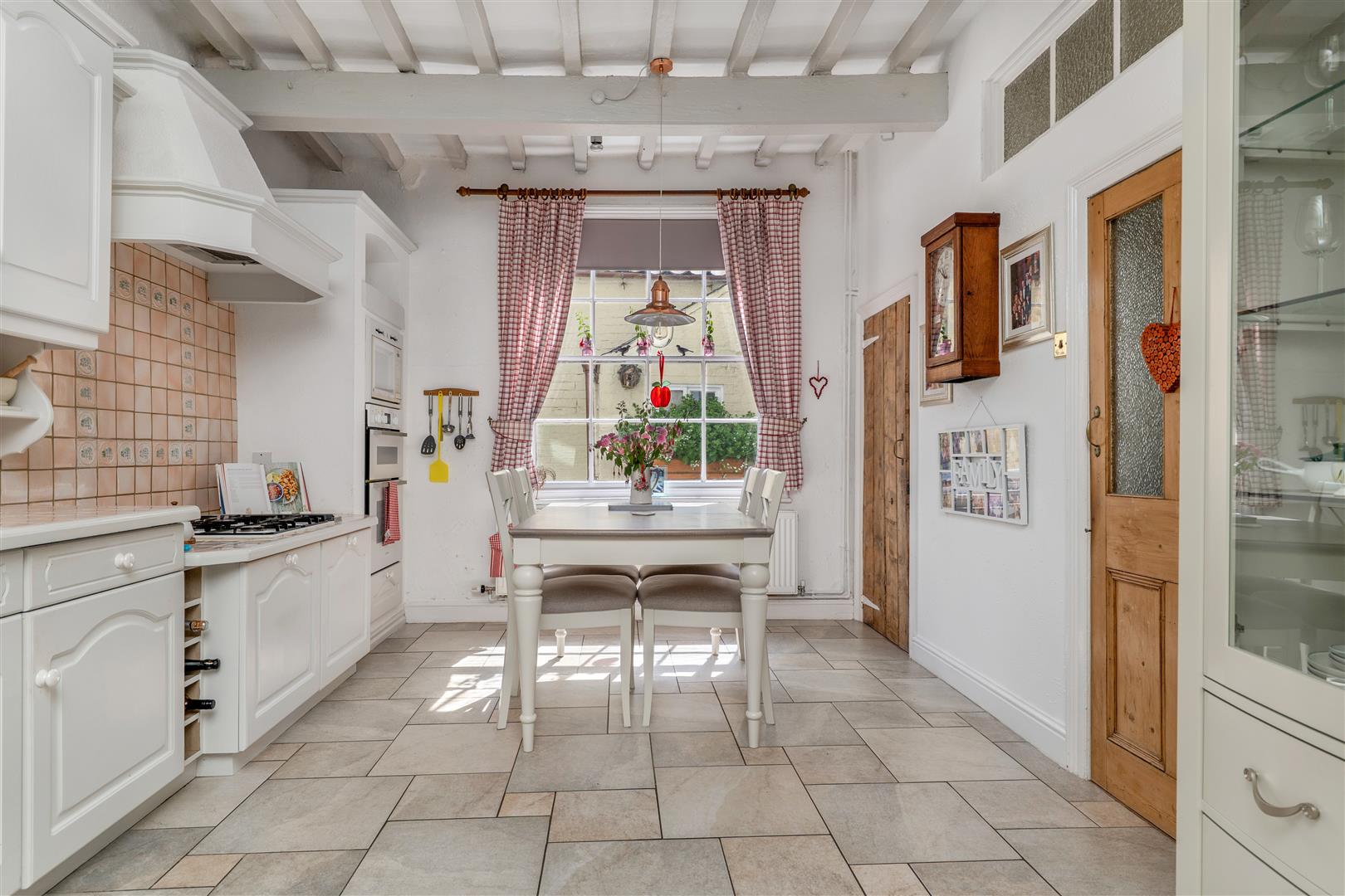 Breakfast Area - 3.30m x 2.54m (10'10 x 8'4) - Beamed ceiling, ceramic tiled floor and door to the cellar.
