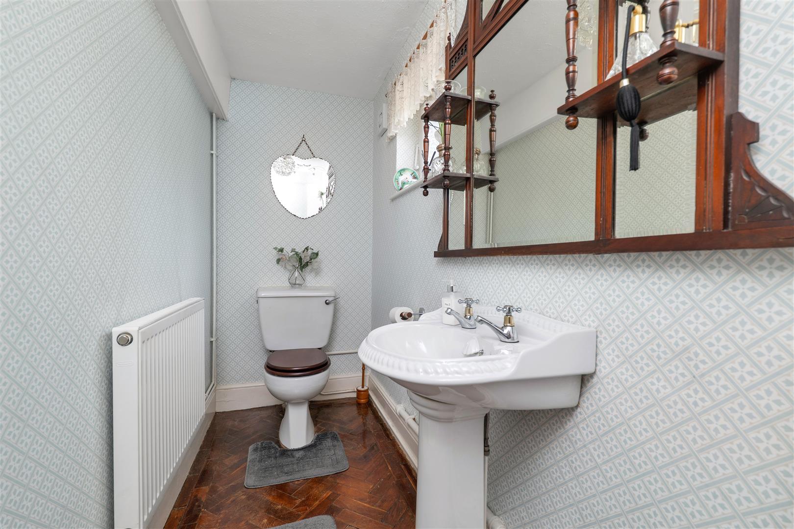 Cloakroom - With low suite WC, basin and radiator.