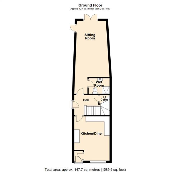 The accommodation provides on the ground floor an entrance lobby, kitchen, inner hall, wet room and a 22ft sitting room with vaulted ceiling. There is a barrel vaulted cellar. Stairs lead to the first floor landing with a fine Georgian drawing room, having two shuttered windows just opposite to St Mary's Church. Bedroom one with a vanity basin and low suite WC en suite is on this floor level. A wide and easy winding staircase leads to the second floor mezzanine level storeroom. Double sized bedroom two with Georgian windows facing the church. The winding staircase continues to the second floor bedroom three with vaulted ceiling.
