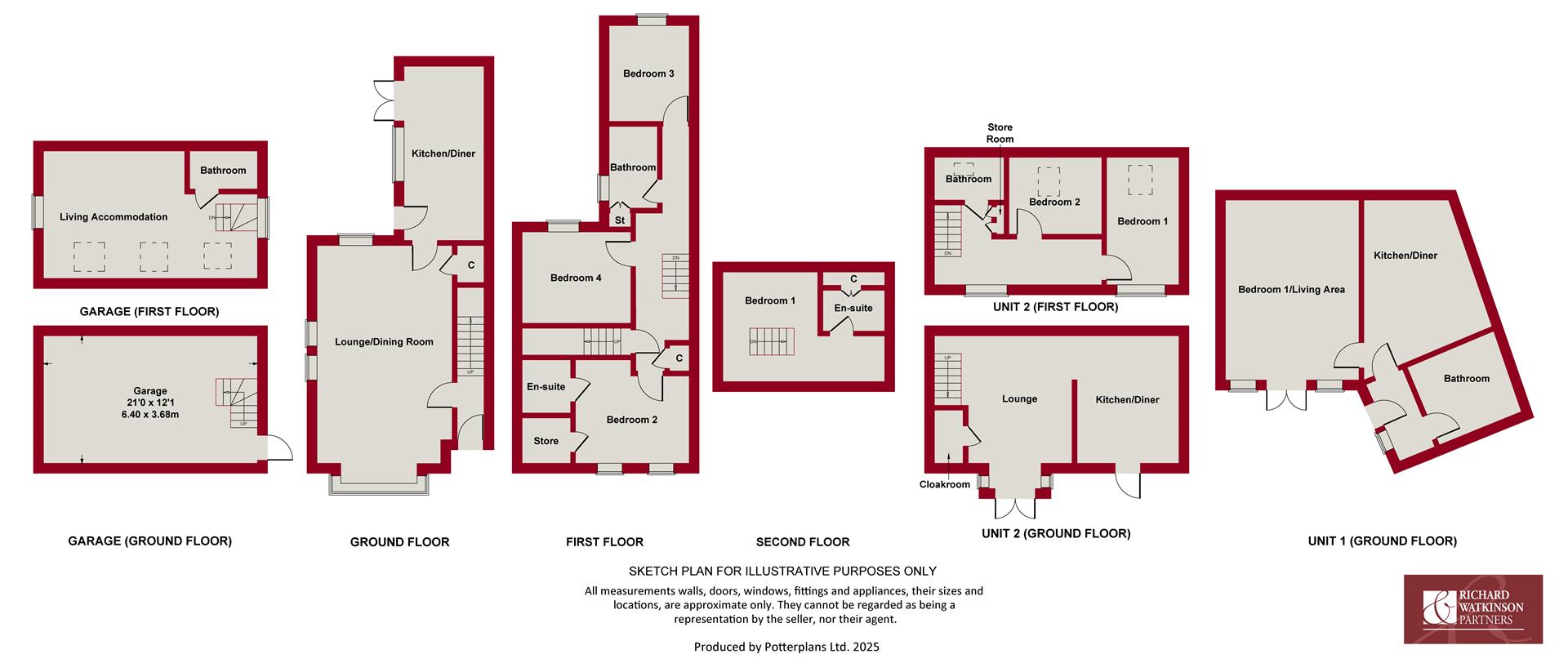 The Victorian House is constructed of brick under a slate roof covering. Unit 1, the ground floor studio apartment attached to the main house, is constructed of rendered brick with a flat roof. Unit 2, the Coach House, is constructed of brick under a slate roof covering. The double garage with studio apartment over (Unit 3) is constructed of brick elevations under a tiled roof covering. The main house has uPVC double glazed windows and a gas fired central heating system fired by a combination boiler located in the first floor bathroom. The annexe accommodation, Units 1 and 2, have electric heating. The living accommodation can be described in more detail as follows: