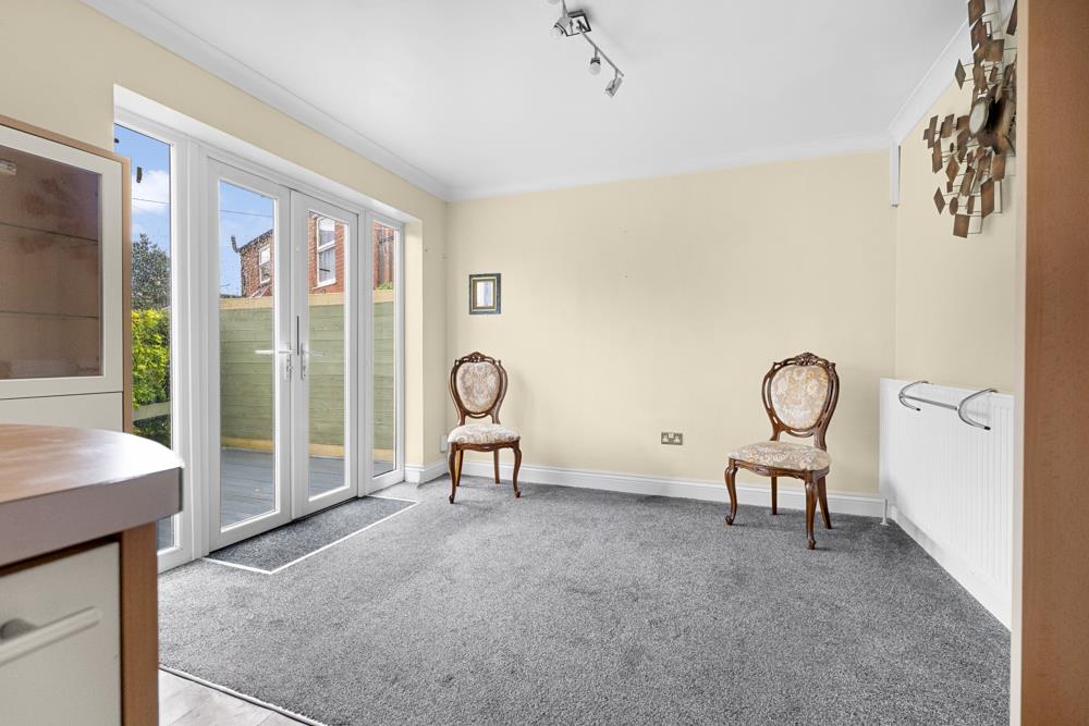 Sitting Room - 5.99m x 3.53m (19'8 x 11'7) - UPVC double glazed French doors and windows to the front, staircase leading to first floor. Electric heater.