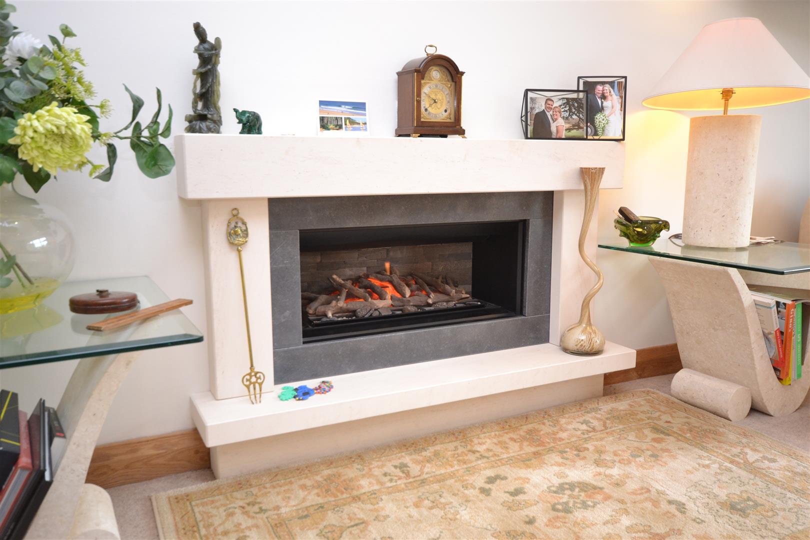 Living Room - 5.18m x 3.56m (17'0" x 11'8") - A separate lounge with a feature remote control gas fueled contemporary fire built into the chimney breast with a stone surround, wall mounted power and tv cable connections, recessed ceiling downlights and a large window overlooking the rear garden.