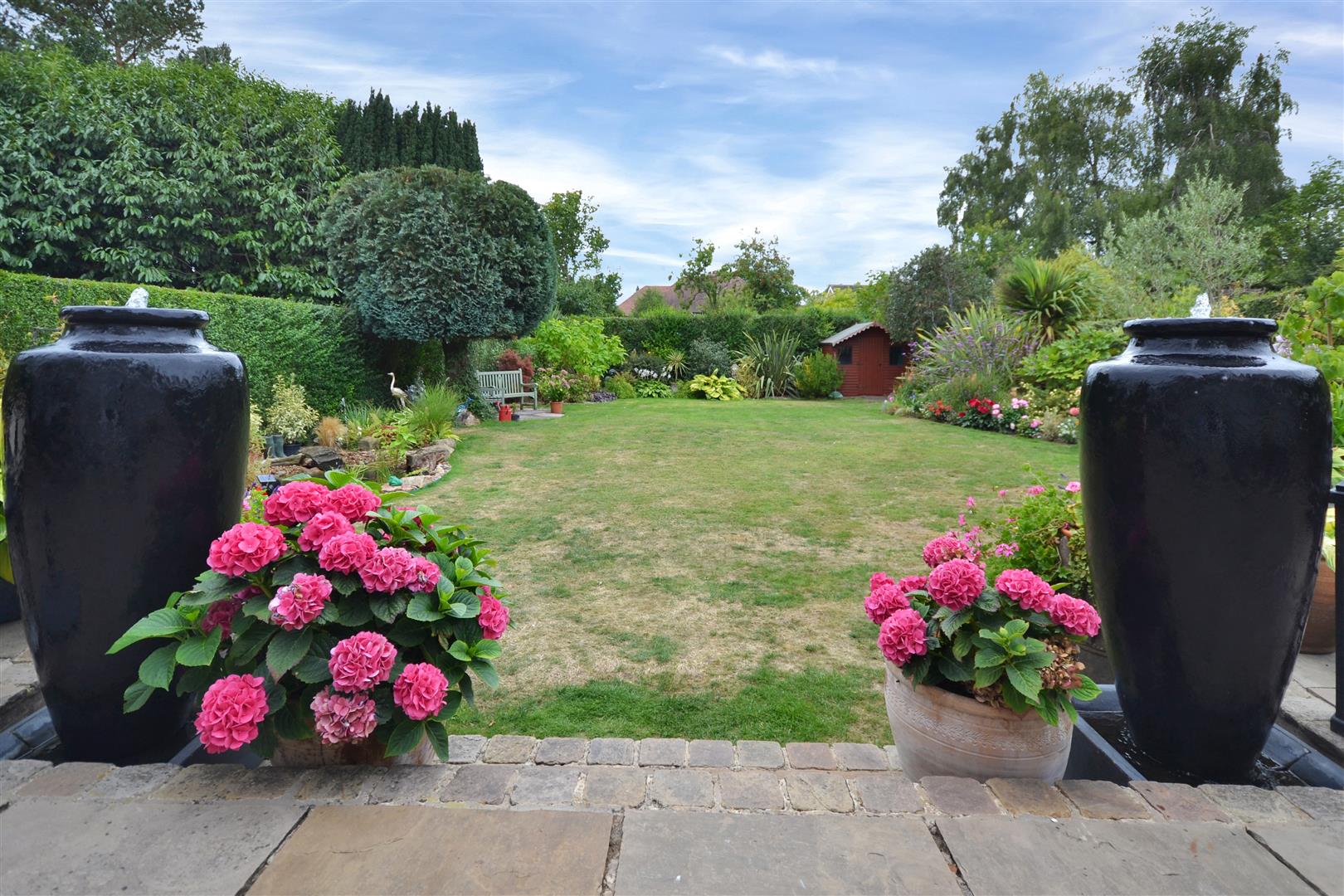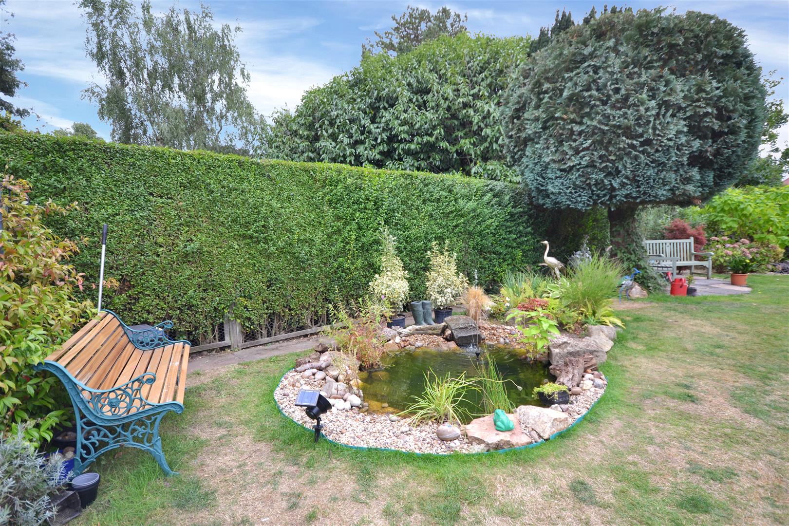 Rear Garden - A wonderful feature to the property is the beautifully landscaped and well established rear garden affording the perfect south west facing aspect having a raised terrace across the back of the house laid in natural stone with ample room for garden furniture and a couple of steps down to the main area of garden laid to shaped lawn, fully enclosed by well kept hedgerows to both side and the rear boundary. Well stocked borders and flowerbeds contain a wide variety of plants, trees and shrubs, an ornamental pond, gardeners shed tucked into the far corner of the plot and a path to a further paved seating area shaded by mature trees.
