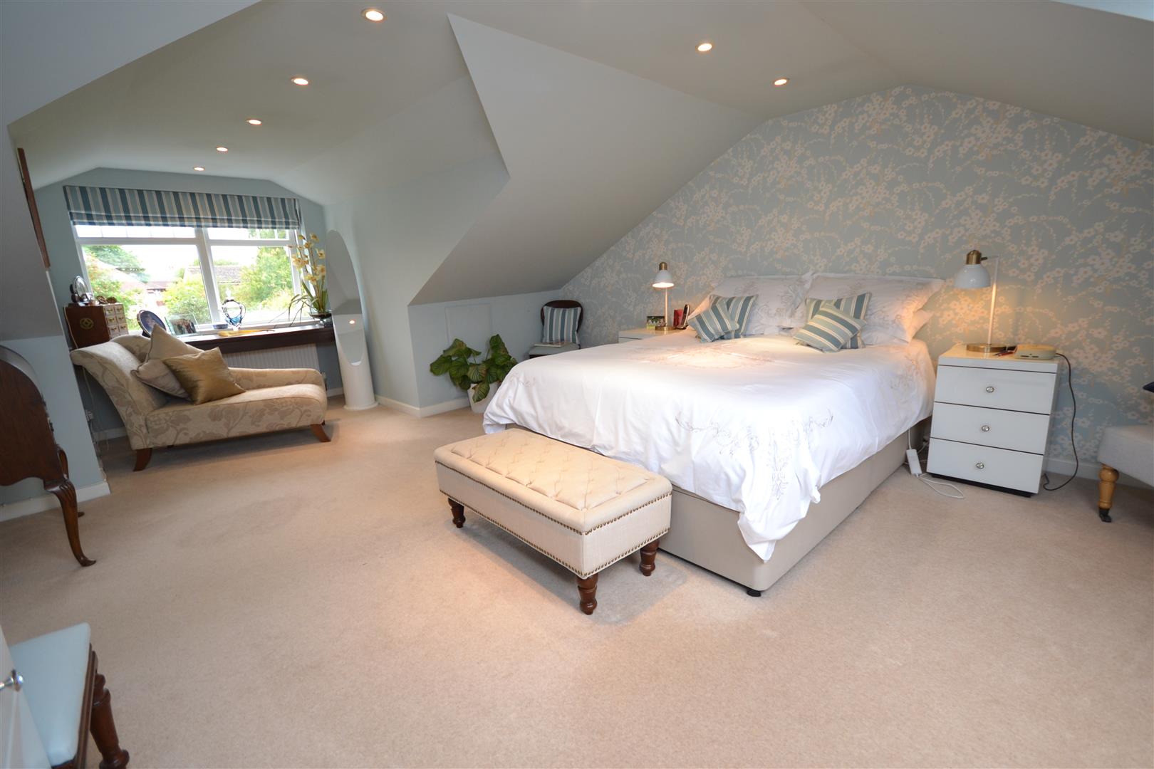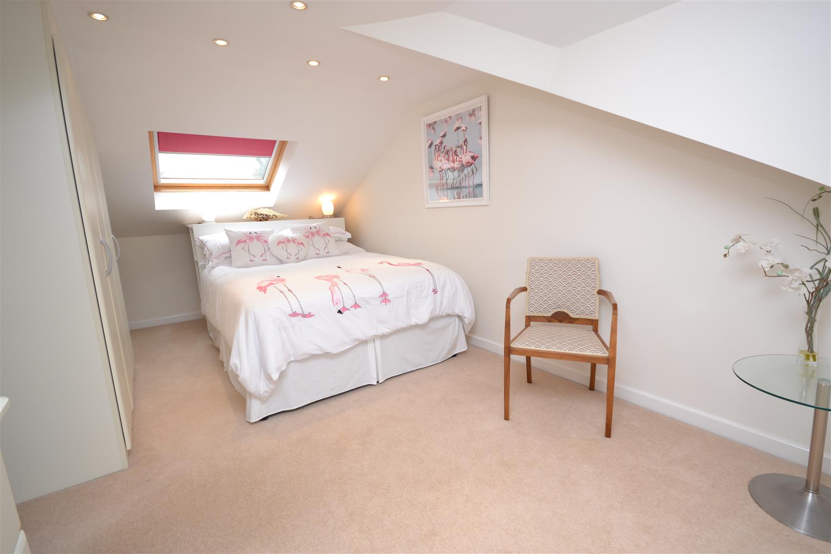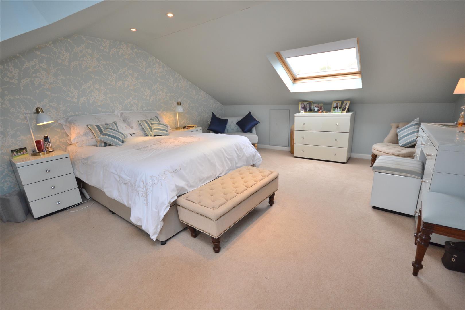 Bedroom One - 6.63m max x 4.22m (21'9" max x 13'10") - This main bedroom has an extensive floor area with the bed positioned in the higher pitch of the ceiling/roof, Velux skylight window to front and a dormer window overlooking the rear garden fitted with a dressing table. Recessed ceiling downlights, wall mounted tv connections, access to storage space within the eaves.