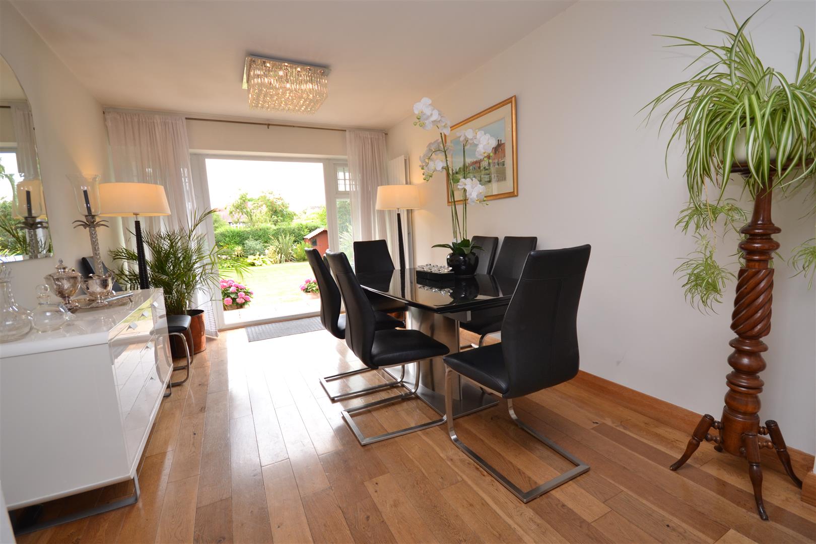 Entrance Hall - 5.44m x 2.31m (17'10" x 7'7") - A spacious and central hallway, open plan to the dining room at the rear and having a staircase with balustrade rising to the first floor with cloaks cupboard beneath fitted with shelving and light. Solid oak flooring, recessed ceiling downlights, internal door leading to the garage, further doors to the living accommodation including bedroom four/home office.