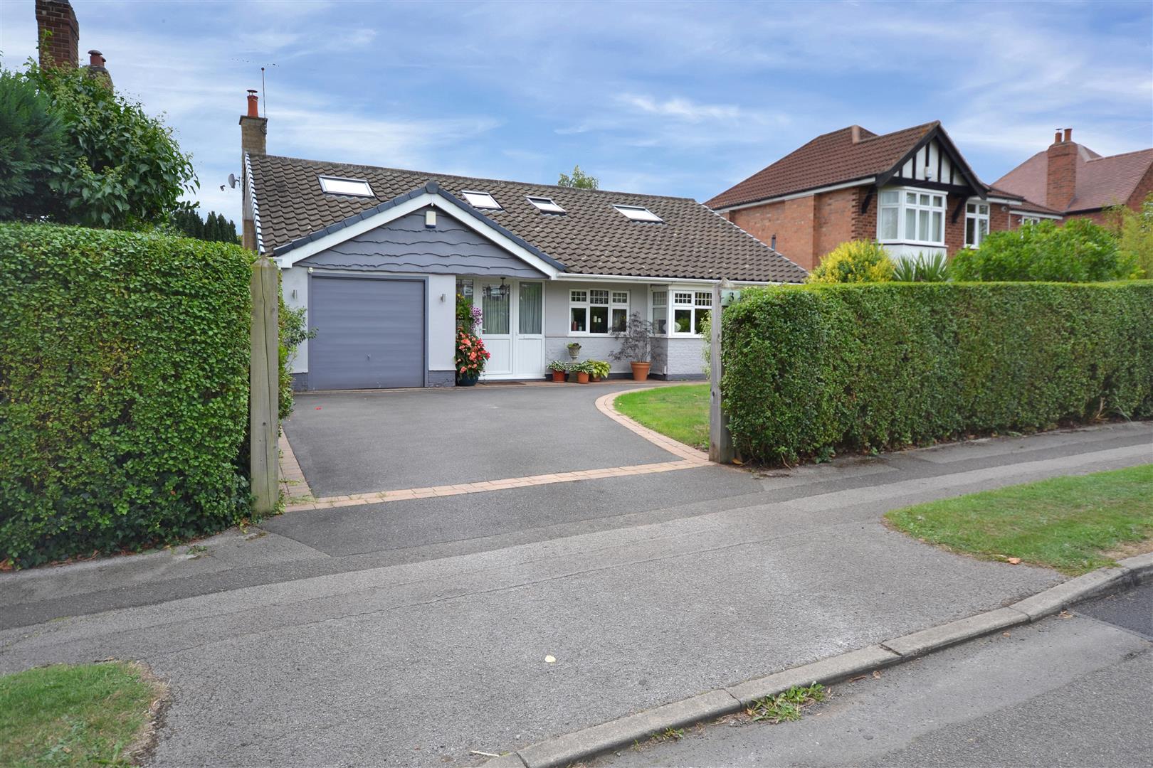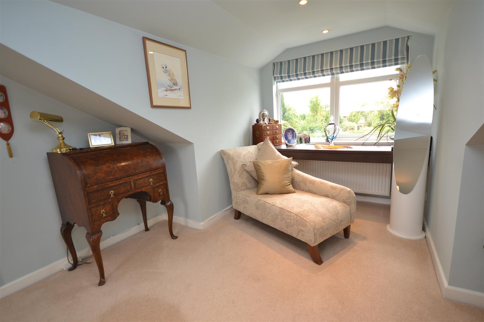 The property sits perfectly on a large and well established landscaped plot, set back with a lawned frontage enclosed by hedgerows with a sweeping driveway providing ample car standing, in turn leading to the garage. The rear gardens affords the perfect south west facing aspect surrounded by neighbouring gardens with mature hedgerows to the boundary, paved terrace, lawn, small pond and a timber shed.