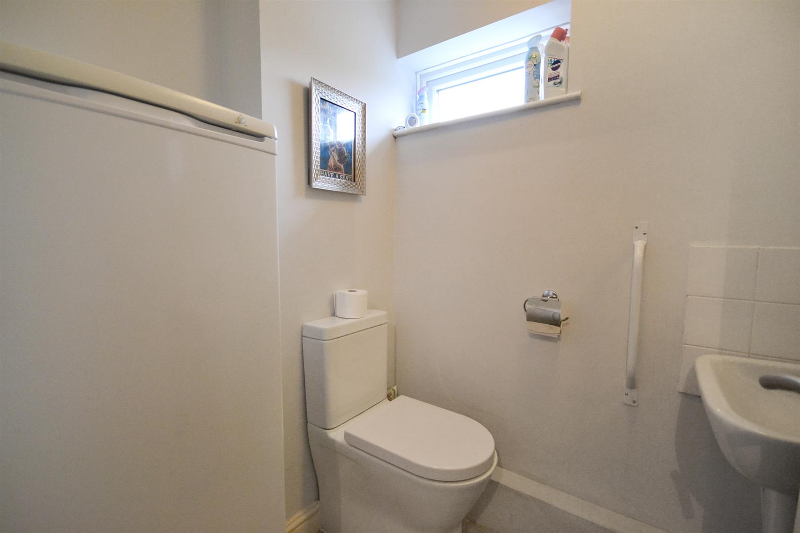 Ground Floor W/C - Fitted with a modern suite including a back-to-wall toilet and a pedestal wash basin with waterfall mixer tap and tiled splashback. Laminate flooring and a uPVC double glazed obscured window to the rear aspect.