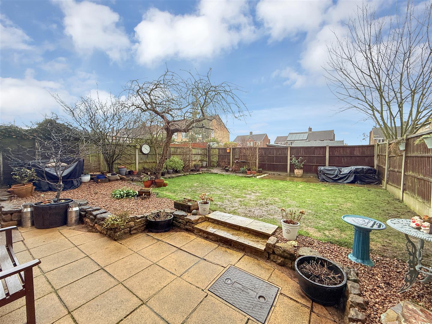 Externally, the property benefits from driveway parking and a useful single garage. The landscaped rear garden is a particular feature, offering a paved patio seating area and a shaped lawn.