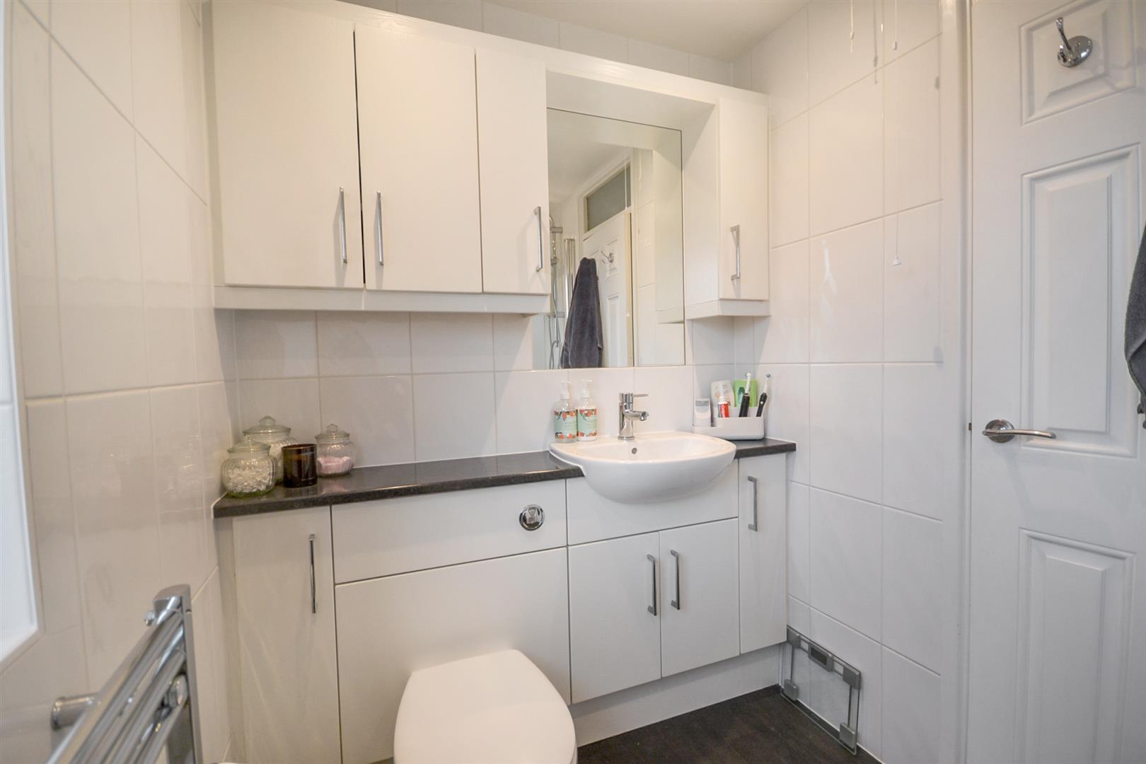 Bathroom - A superbly appointed bathroom fitted in white with a panel sided bath with mixer tap and Aqualisa electric shower over plus glazed shower screen. There is a vanity wash basin with mixer tap and cupboards below as well as a concealed cistern toilet to the side. Further bathroom cabinets provide additional storage. The walls are tiled to full height, spotlights and extractor fan to the ceiling plus a chrome towel radiator and a uPVC double glazed obscured window to the rear aspect.