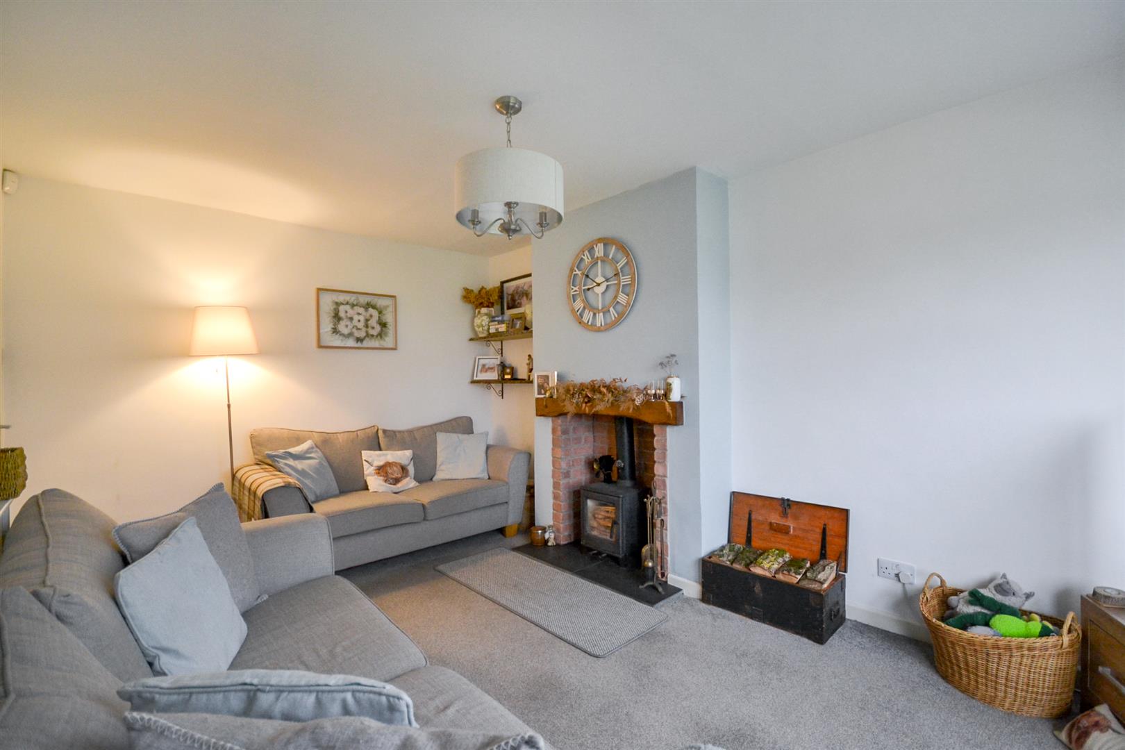 Lounge - A well proportioned reception room having a central heating radiator, a uPVC double glazed bay window to the front aspect and a feature fireplace with exposed brick surround and slate tiled hearth housing a floor-standing log burner.