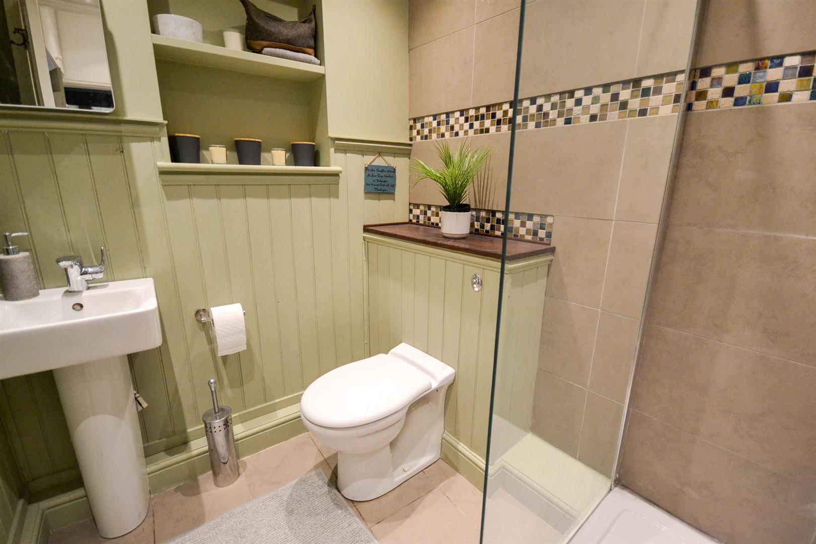 Ground Floor Shower Room - Accessed from the rear hallway and having tiled flooring and tiling for splashbacks plus attractive panelling to walls. There are spotlights to the ceiling, an extractor fan and a pedestal wash basin with mixer tap plus concealed cistern toilet. There is a shower enclosure with glazed fixed screen and Mira Azora electric shower.