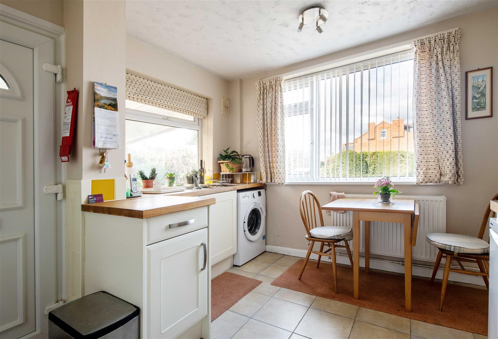 The property features an inviting entrance hallway leading to a lovely dual-aspect lounge, complete with a feature fireplace - perfect for relaxing or entertaining. The stylish Shaker-style kitchen is well-equipped with a built-in oven and hob, providing a functional and attractive space for cooking.