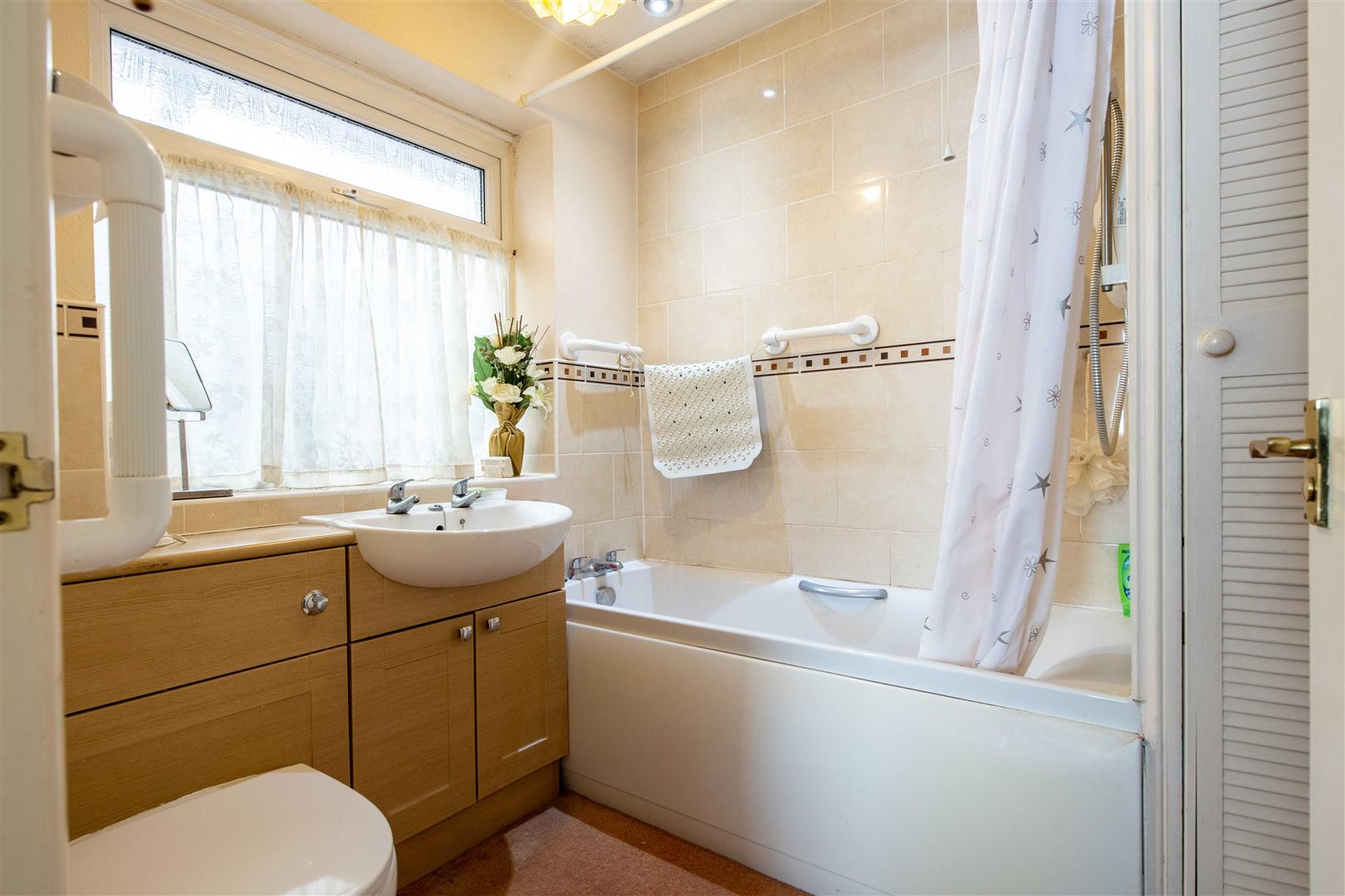 En-Suite Bathroom - A three piece bathroom fitted with a panel sided bath with hot and cold taps and Mira electric shower over. Vanity wash basin with hot and cold taps and cupboards below plus concealed cistern to the side, tiling for splashbacks, a chrome towel radiator, a uPVC double glazed obscured window to the side aspect and an airing cupboard housing the Alpha combination boiler.