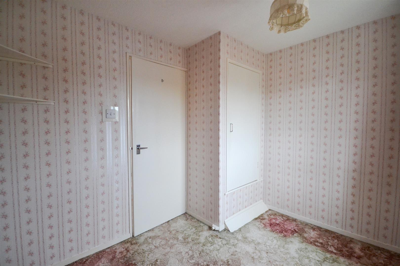 Bedroom Three - With a central heating radiator, a uPVC double glazed window to the front aspect and a built-in wardrobe over the stairs with hanging rail and shelf.