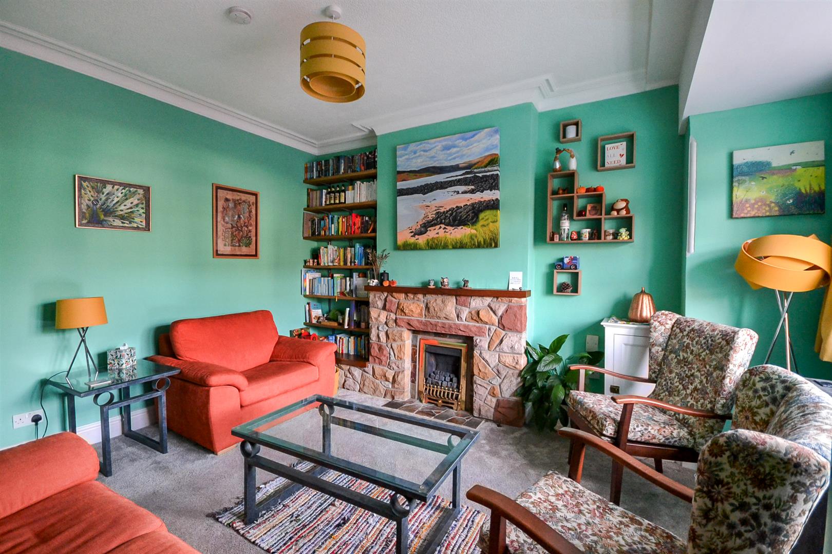Lounge - A well proportioned reception room with ornate cornicing to the ceiling, a central heating radiator, a uPVC double glazed window to the front aspect and a fireplace with a stone surround housing a coal effect gas fire.