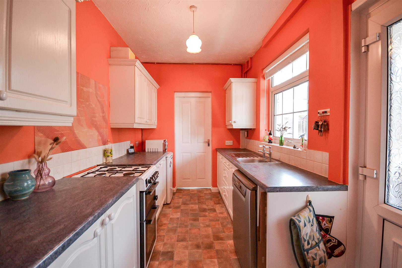 Kitchen - Fitted with a range of base and wall cabinets with rolled edge worktops and tiled splashbacks, an inset stainless steel single drainer sink with hot and cold taps and space for appliances including a gas cooker point and plumbing for a dishwasher. There is a uPVC double glazed door and window into the lean-to conservatory and a cupboard housing the Ideal combination boiler.